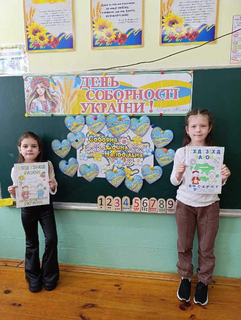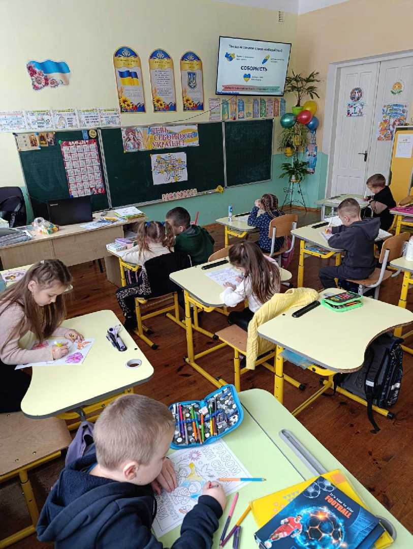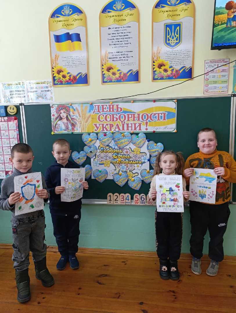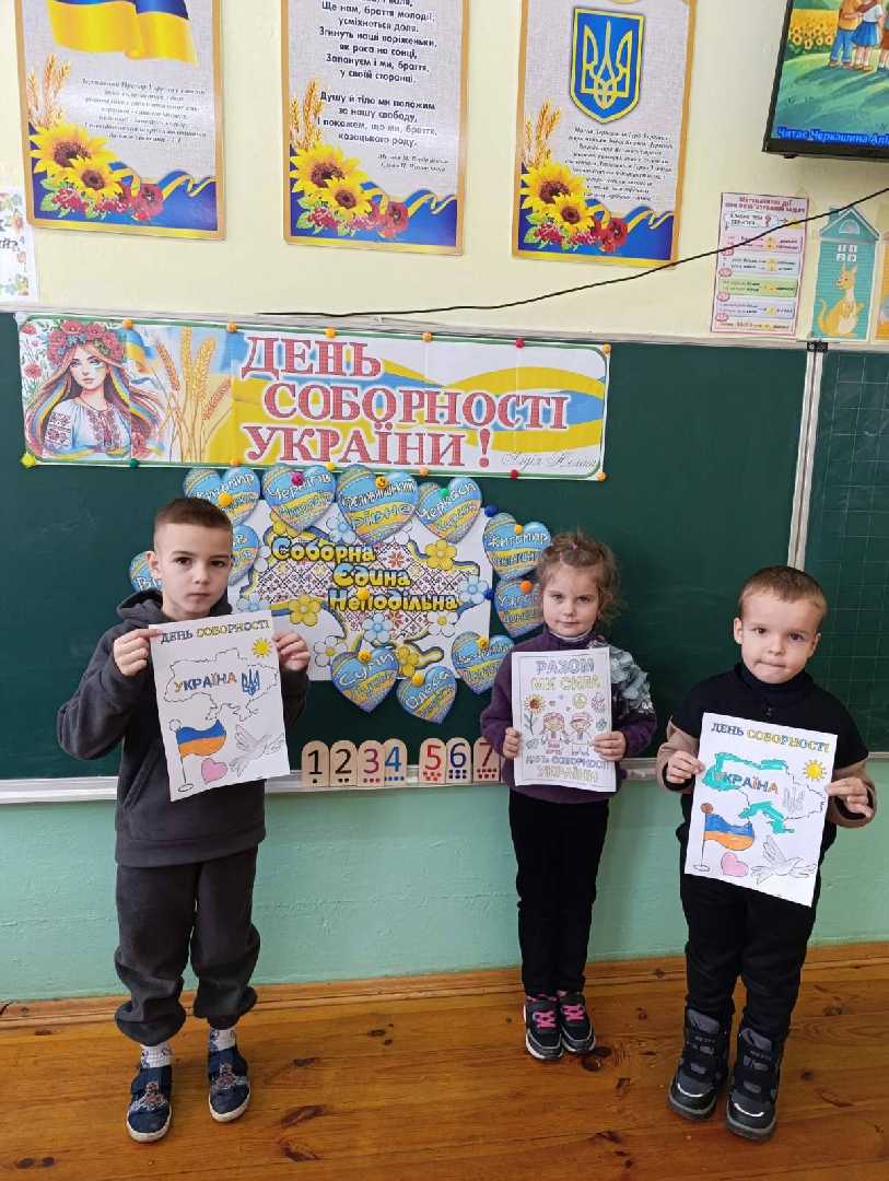 Виховне заняття у 1 класі Волсвинської гімназії "День Соборності України" (кл.кер.Лішка М.В., асистент вч. Лішка У.П.). Учні усвідомили важливість свята Соборності, що нагадує про найголовніший урок нашої спільної історії: в єдності - сила. Діти створили "живий ланцюг", розфарбували розмальовки, переглянули презентацію про свято. "Ми різні, але об'єднані любов'ю до України". Кожен із нас, як маленький струмочок, що впливається у невелику ріку. Разом ми створюємо могутню, єдину і непереможну Україну.