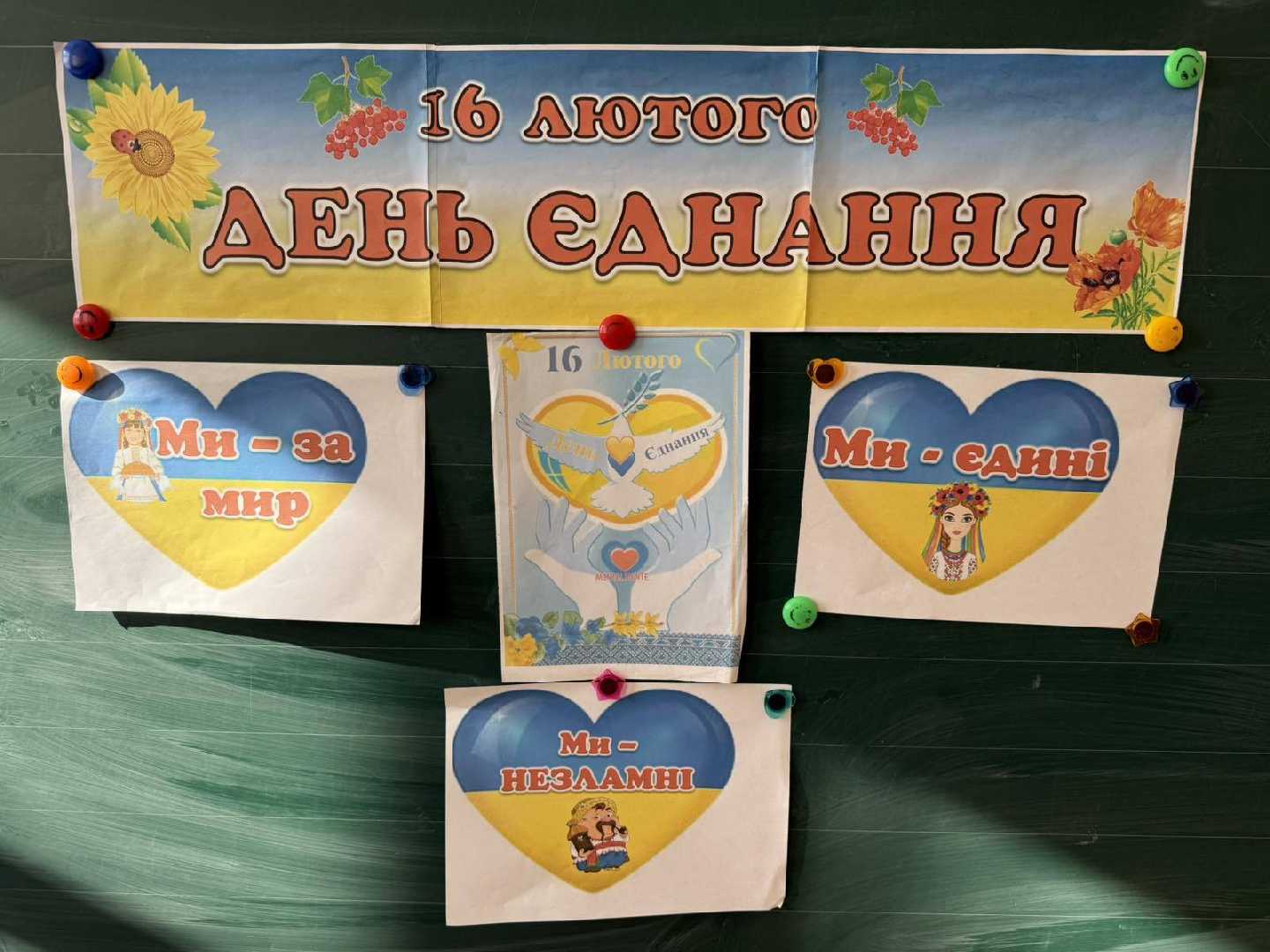 16 лютого у 2 класі проведено виховний захід до Дня єднання. Метою його було виховання в учнів любові до України, поваги до державних символів та формування почуття згуртованості.(Кл.керівник Рісна Г. В.та асистент вчителя Запісоцька К. Д.)