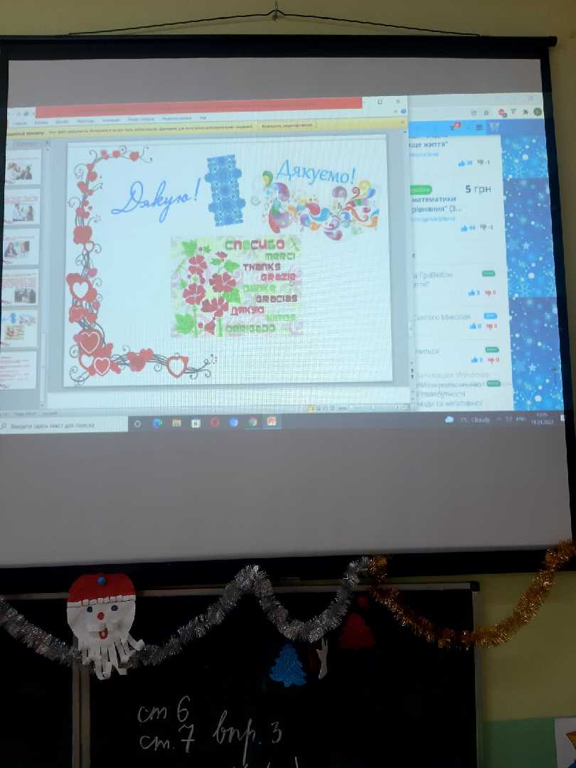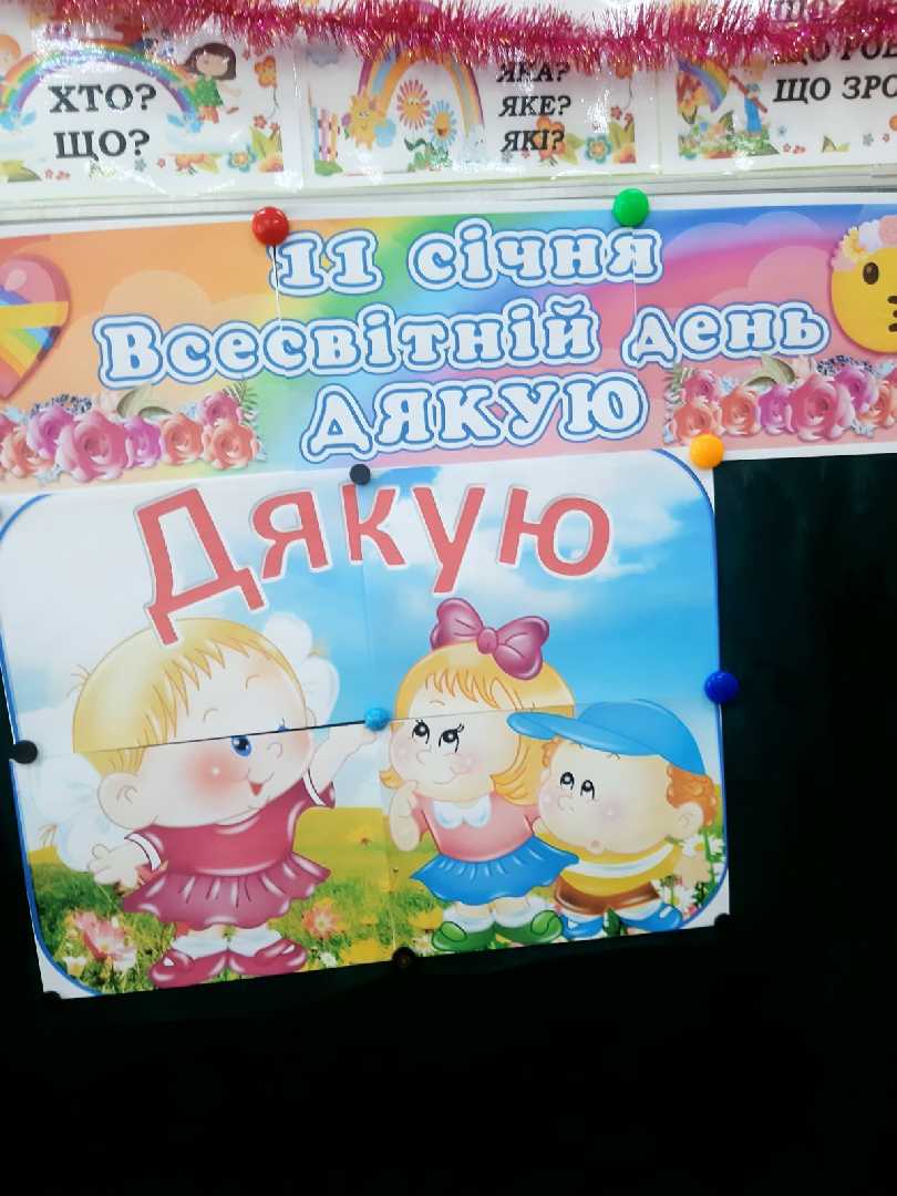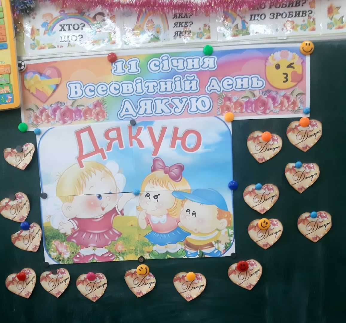 Сьогодні у 3 класі ( кл. керівник Сторощук Л.П.) пройшла виховна година "Цікаві факти про слово Дякую", так як 11 січня- Всесвітній день ДЯКУЮ. Діти вчилися знаходити приводи для подяки в різних ситуаціях, використовувати це чарівне слово щиро в повсякденному житті.