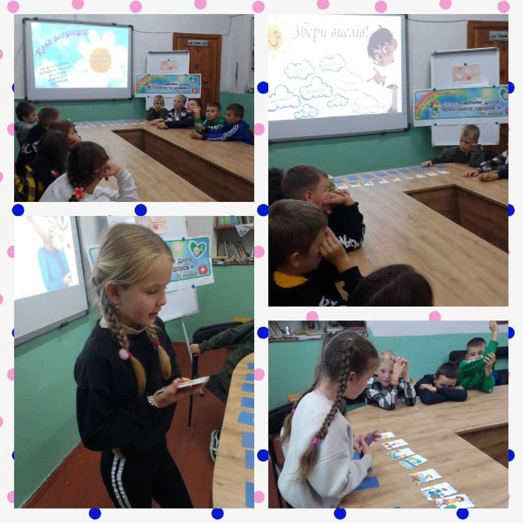 10 ЖОВТНЯ - ВСЕСВІТНІЙ ДЕНЬ МЕНТАЛЬНОГО ЗДОРОВ'Я У нашій гімназії було проведено тренінгові заняття щодо збереження психічного здоров'я та подолання стресових ситуацій у дітей. Вправи на подолання втоми і стресу, руханки, дихальна гімнастика, "асоціативний кущ", мемо ігри - разом розвиваємо емоційну сферу. Бережемо психічне здоров'я - готуємо сили до ПЕРЕМОГИ