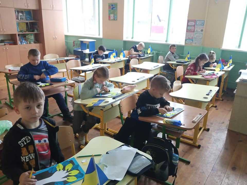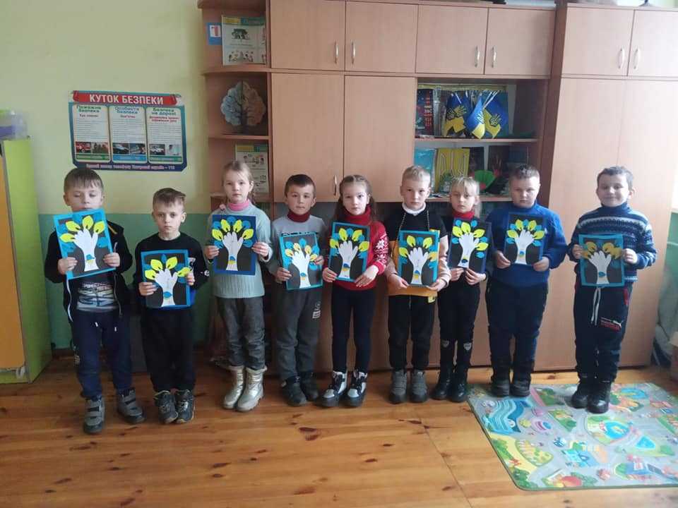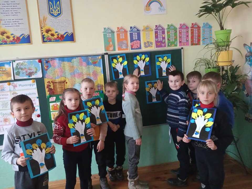 Виховна година у 2 класі "22 січня - День соборності України". Учні слухали розповідь про це свято, читали вірш Лесі Храпливої "22 січня" та виготовляли аплікації "Я люблю Україну".
