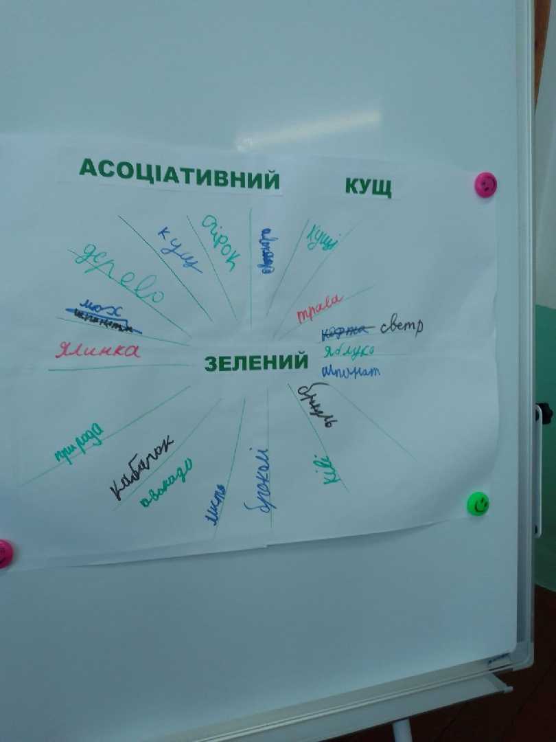 "Кольоровий тиждень толерантності" СЕРЕДА - День природної гармонії. (Кольори: зелений, салатовий, м'ята). Пр.психологом було проведено тренінгове заняття з учнями 5-6 кл. на тему: "Дерево толерантності", в ході якого учні виконували різні вправи, проходили анкетування та створювали асоціативний кущ.