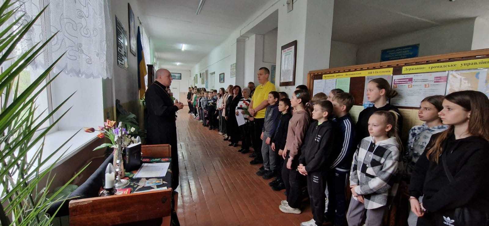 Наша шкільна родина разом з отцем Василієм Дубецьким розпочала сьогодні Тиждень духовності зі спільної молитви, сповненої надії і віри в перемогу. На превеликий жаль, наша Книга пам'яті збільшилась ще на одну сторінку. В бою за незалежність України загинув наш випускник Черній Володимир Васильович, 2001 р.н., який добровольцем став на захист нашої Батьківщини. Сьогодні ми разом з його дружиною вшанували пам'ять Героя. Спогадами поділилась вчителька українською мови та літератури Рогаля Л.І. Володя був добрим, веселим, щирим хлопцем, став відважним воїном. Таким він назавжди залишиться в нашій пам'яті.