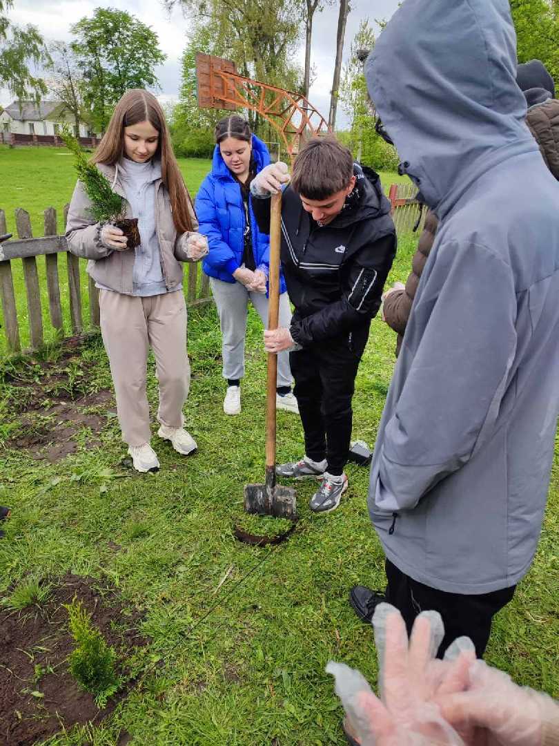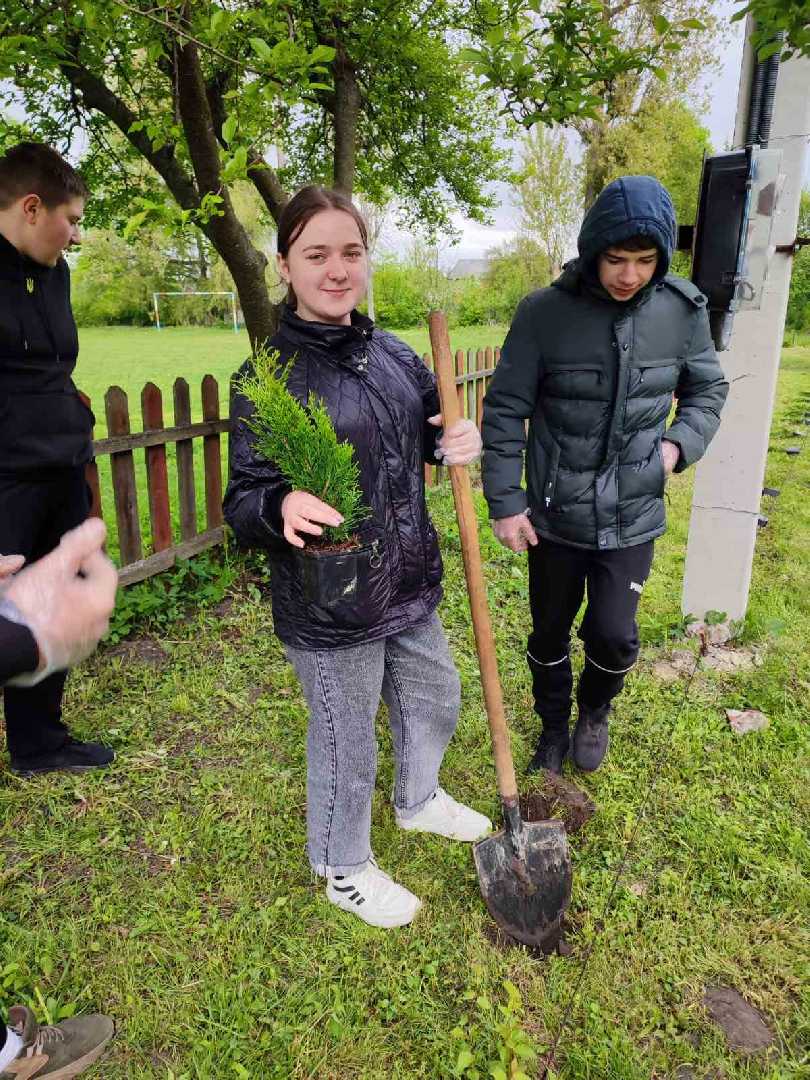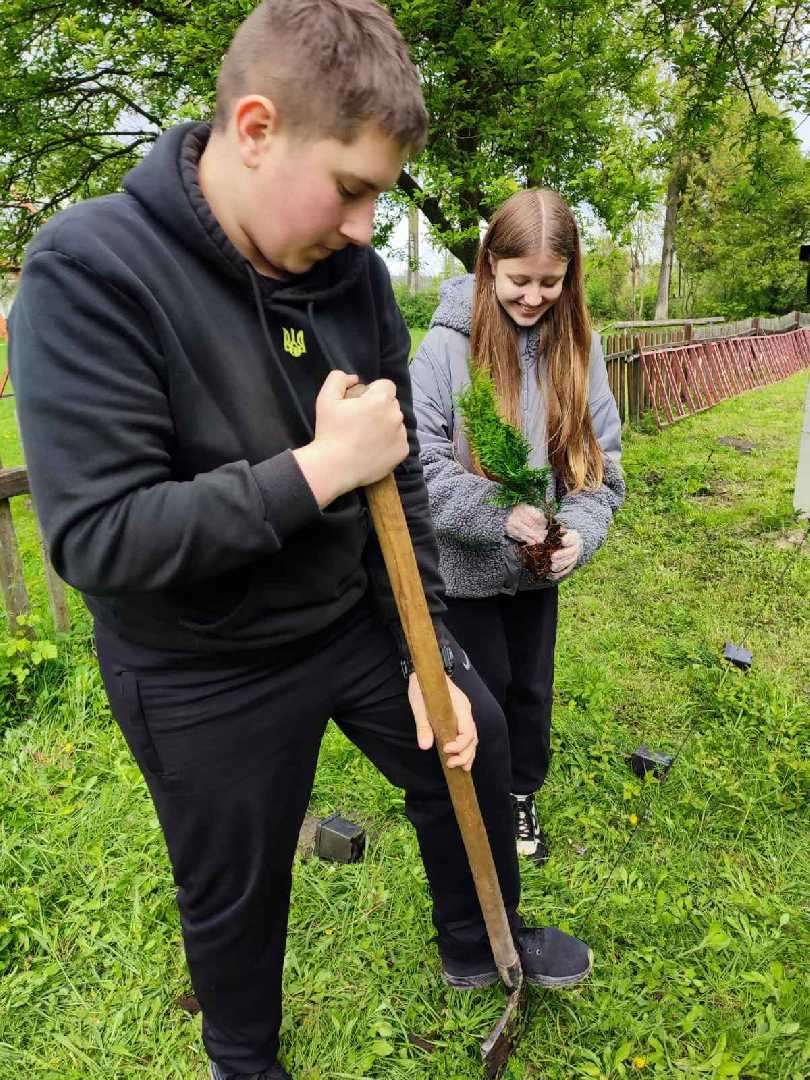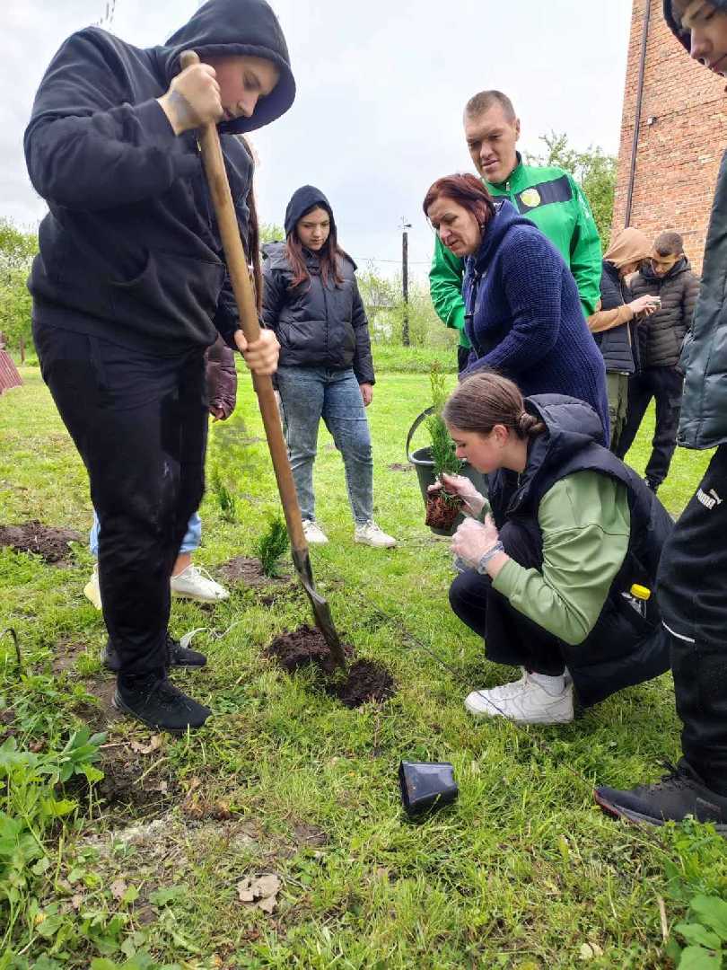 Сьогодні випускники - 2024 року, учні 9 класу, долучилися до акції єднання та віри "ВИПУСКНИК - 2024 РОКУ ДЛЯ МАЙБУТНІХ ПОКОЛІНЬ". Вони висадили туї "Смарагд", щоб через 20 років вже своїм дітям показати, якою сильною була віра в нашу Державу та щасливе майбутнє.
