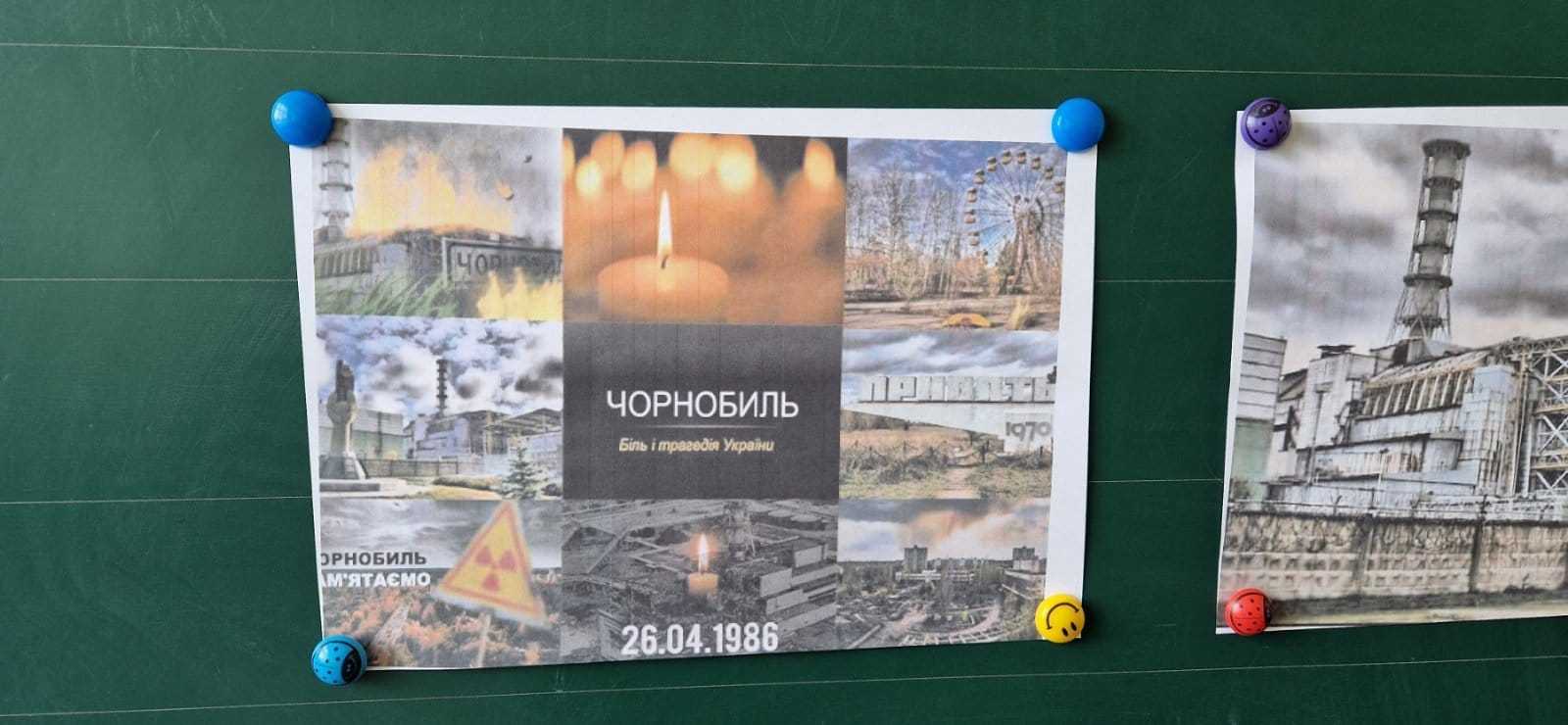 До 38-их роковин Чорнобильської катастрофи у 2 класі бібліотекарем Саїк В.О. проведено бесіду "Чорний біль Чорнобиля". Чорнобиль... Сьогодні це слово знає весь світ. Чорнобиль - це мука і трагедія, Це подвиг і безсилля, Не пам'ять, це наш нестерпний біль. Чорнобиль... чорний біль землі. Це вогнище скорботи і печалі, Це сиві трави у ранковій млі. Жахливий сон, що сниться нам ночами. Чорнобиль... Біль,і жаль, і туга... Щоденний плач, щоденна смерть. Це втрата батька, сина, друга... Слізьми наповнена земля ущент.