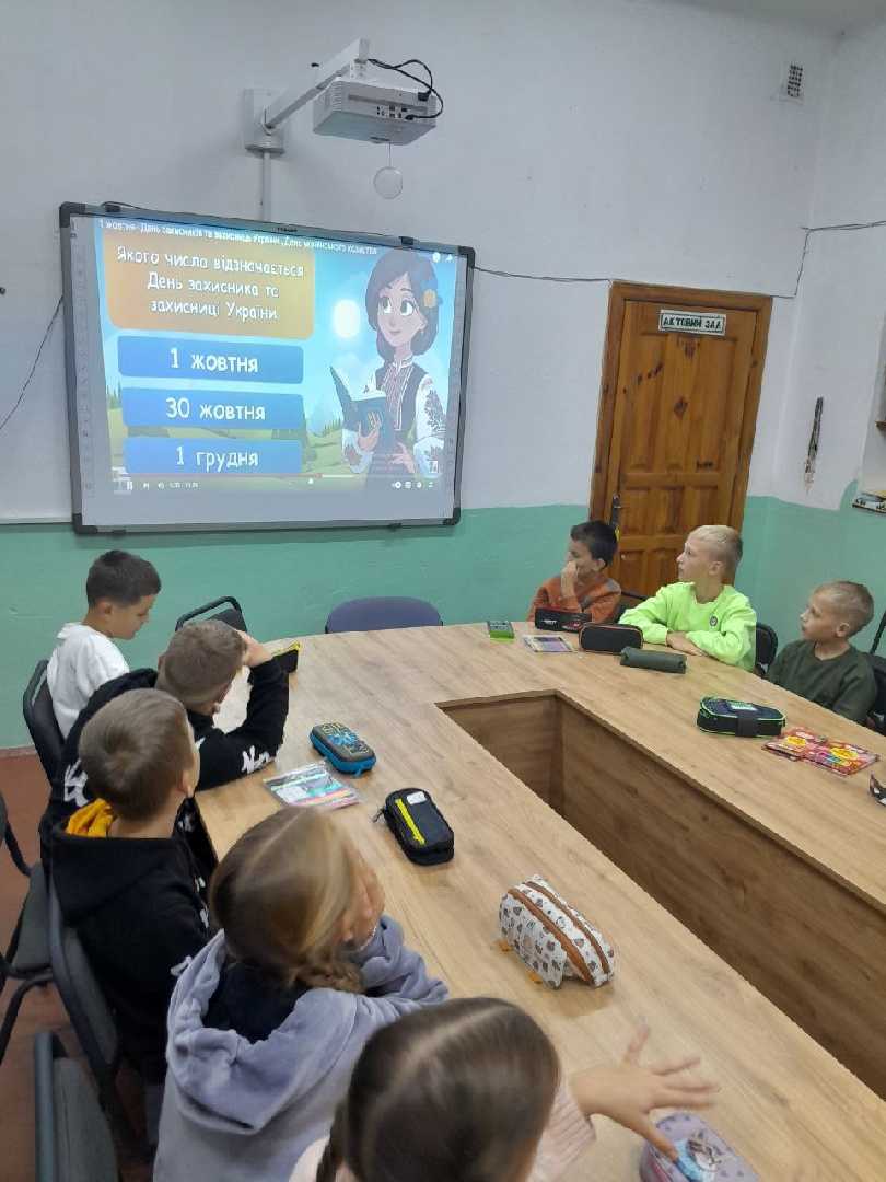 Виховний захід у 4 класі до Дня захисників та захисниць України, Дня Українського козацтва, Дня Покрови Пресвятої Богородиці. Учні ознайомилися з історією цього свята, хвилиною мовчання вшанували пам'ять загиблих героїв і героїнь, пройшли вікторину, намалювали малюнки захисникам. ДЯКУЄМО НАШИМ ГЕРОЯМ І ГЕРОЇНЯМ ЗА ЇХ ВІДВАГУ ТА НЕЗЛАМНІСТЬ У БОРОТЬБІ ЗА МИР В УКРАЇНІ!