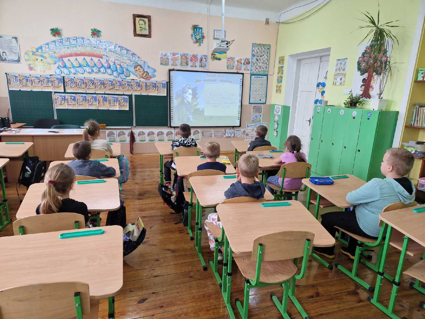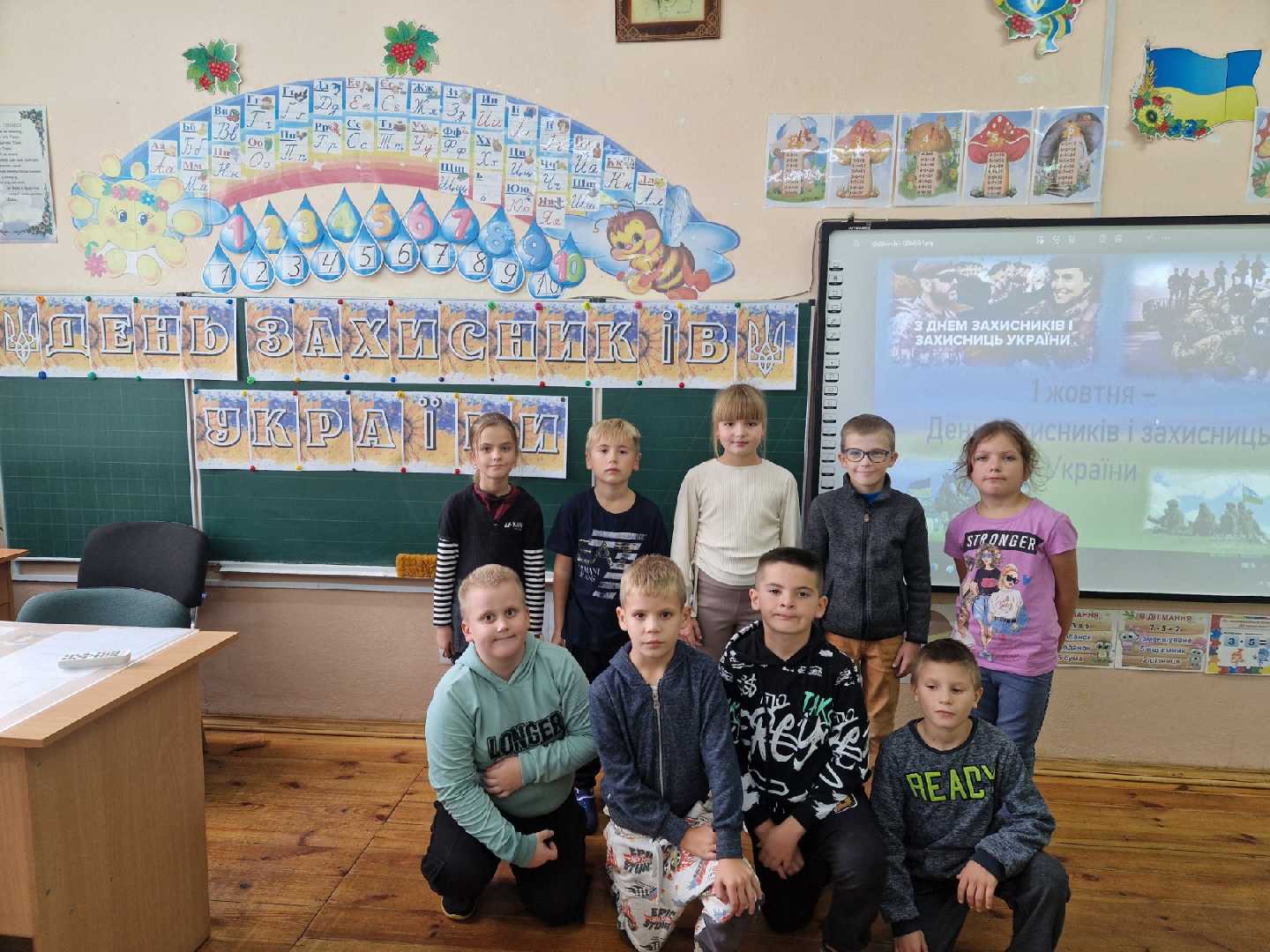 Сьогодні у 3 класі було проведено виховну годину на тему "День захисників та захисниць України". Учні відгадували загадки, взяли участь у вікторині, вирізали листівки нашим захисникам та вшанували хвилиною мовчання полеглих Героїв.