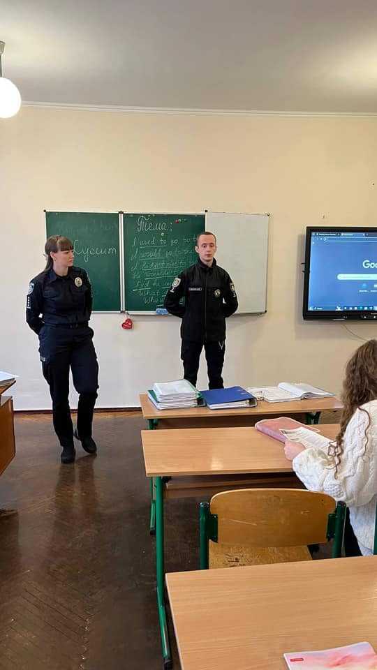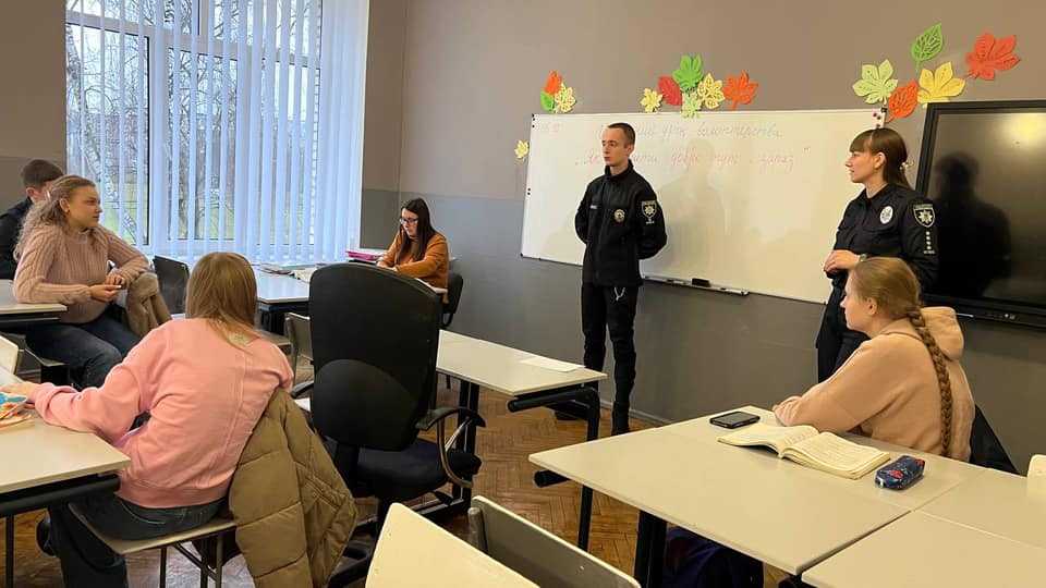 Про правила вступу до Львівського державного університету внутрішніх справ старшокласникам розповів рядовий поліції, курсант 2-го курсу, факультету N1(з підготовки фахівців для органів досудового розслідування Національної поліції України) Львівського державного університету внутрішніх справ, Роман Кімаковський спільно з інспектором сектору СОБ Шептицького РВП, капітаном поліції Катериною Левицькою.