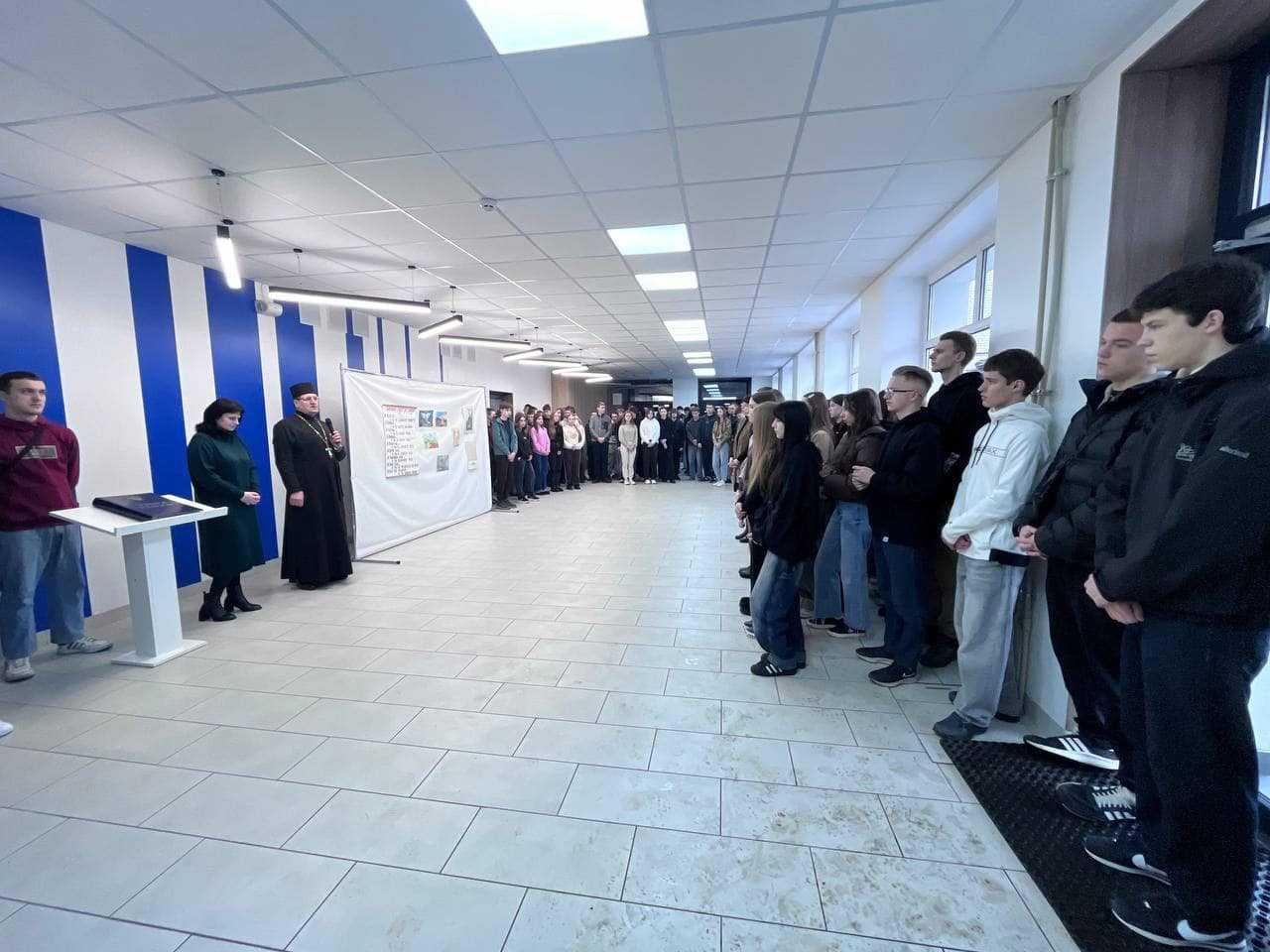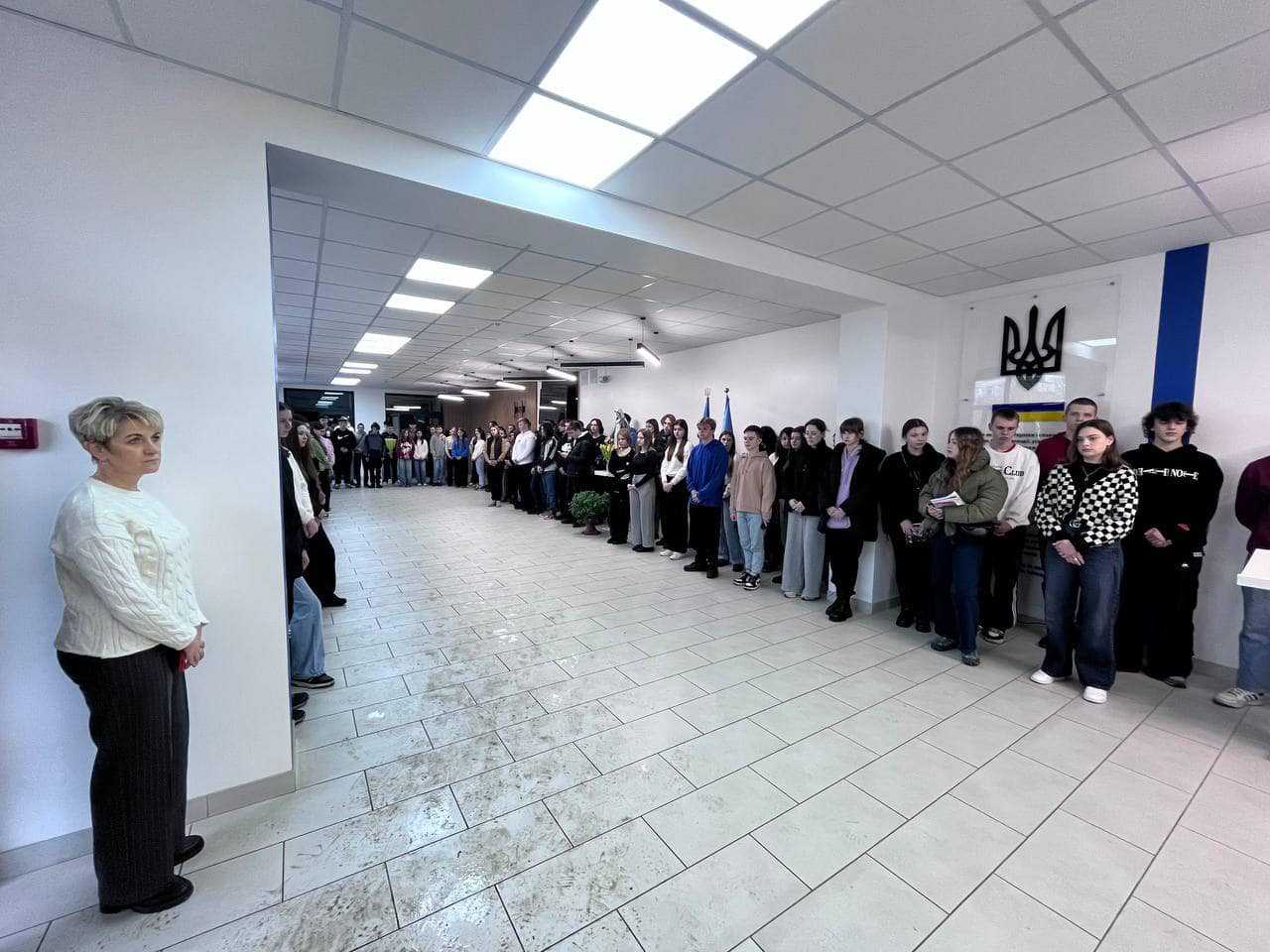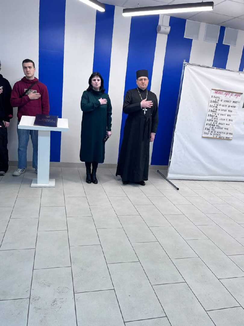На лінійку з Божим благословенням завітав о. Іван Макух. Після хвилини мовчання та спільного виконання Гімну України священик проказав молитви і дав християнські настанови.
