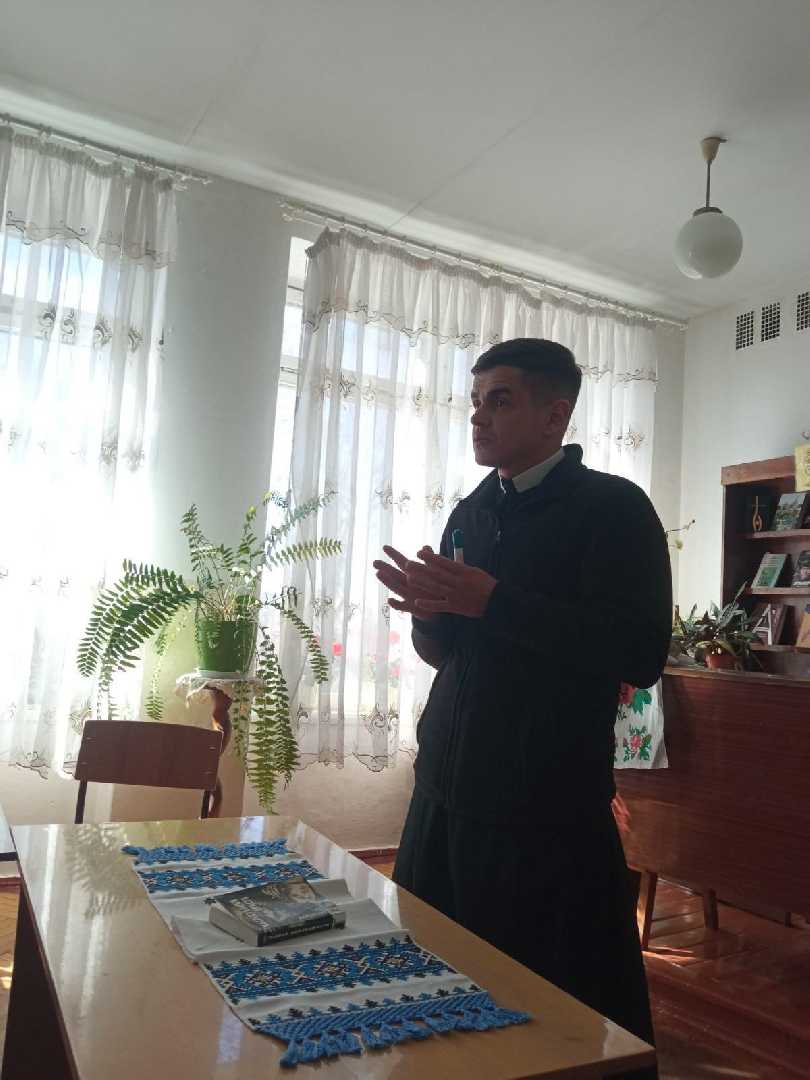 У вівторок, 18 березня, у межах Тижня духовності в нашому закладі відбулася зустріч учнів 10-Д2, 10-Д3, 10-Е класів з о. Степаном із церкви Святого Юрія.
