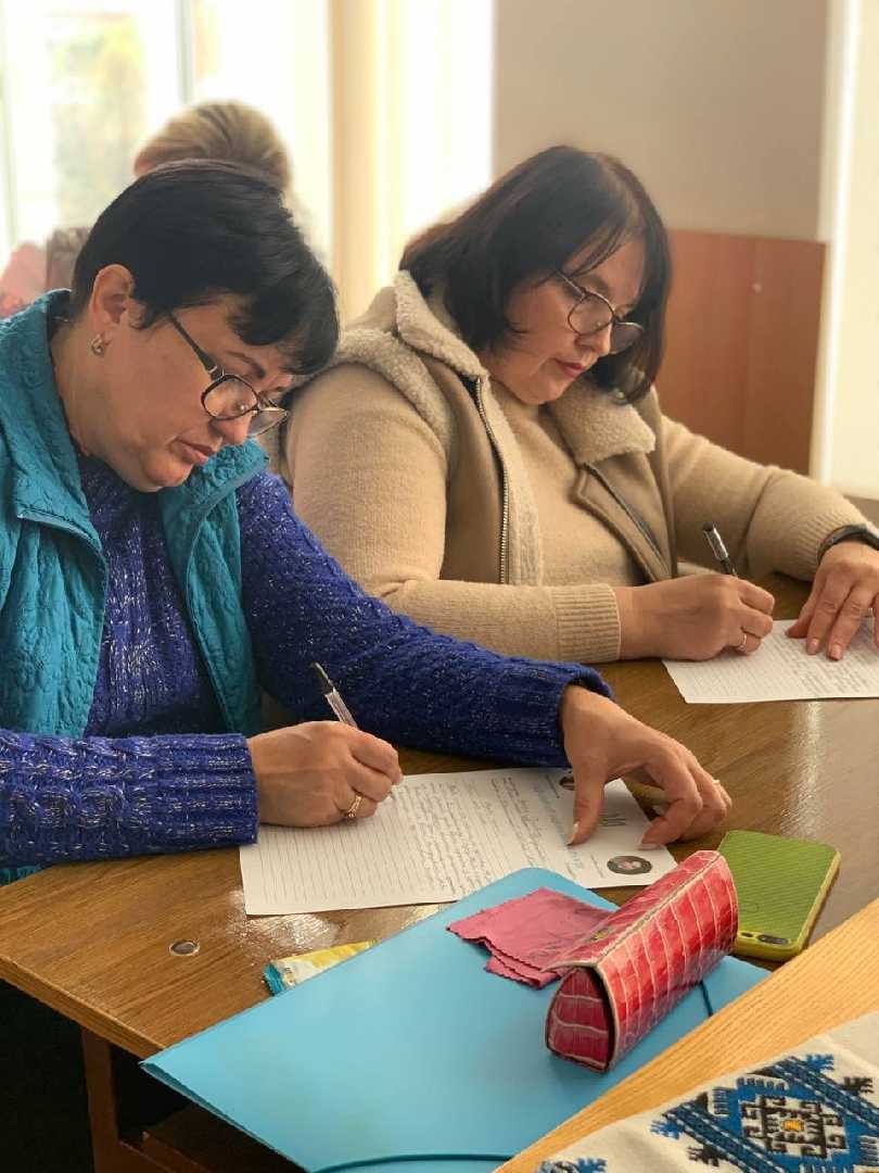 Упродовж заходу вчителі обговорили історію створення радіодиктанту, його мету та значення. Згадали, як змінювалася традиція з року в рік, як диктант став не лише перевіркою грамотності, а й справжнім індикатором єдності нації.