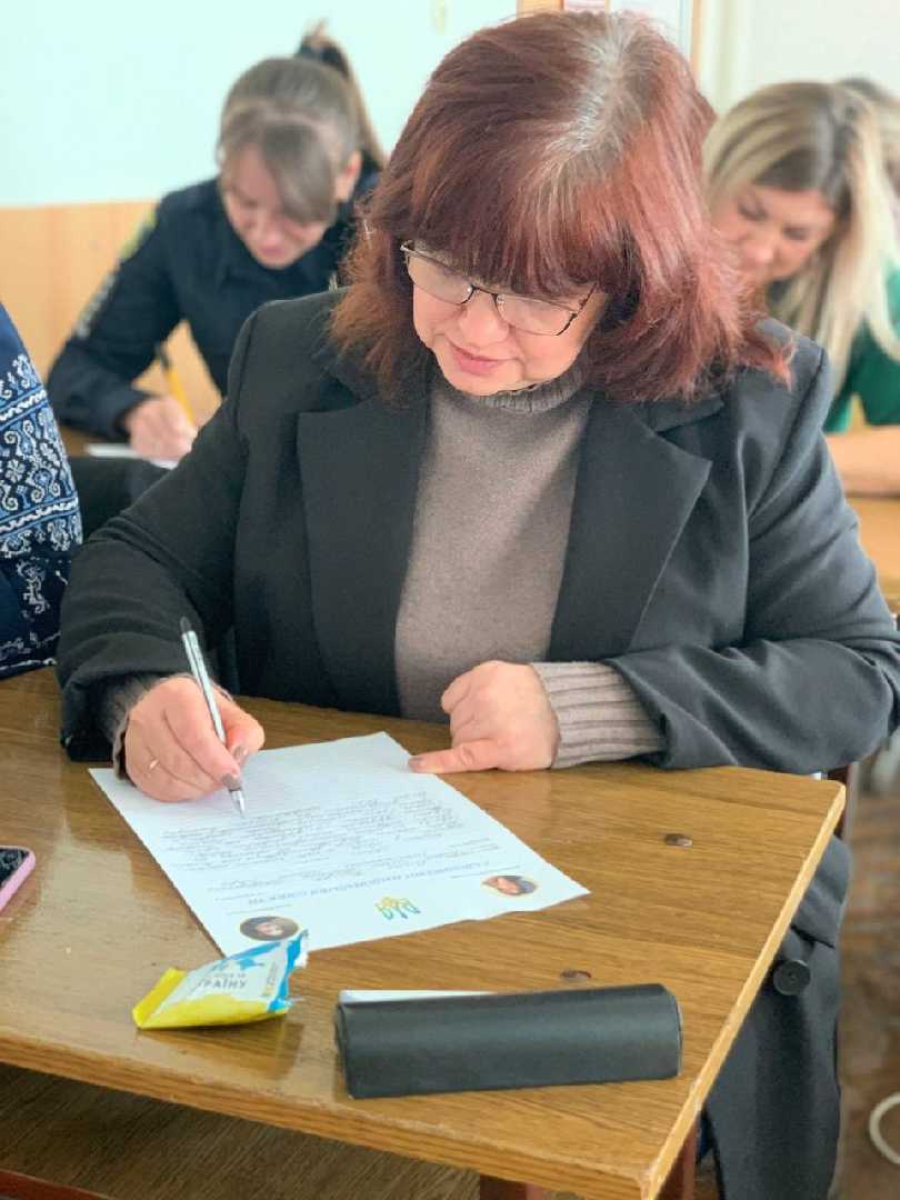До всеукраїнської акції долучилися й працівники Ліцею імені Тараса Городецького. Педагоги, адміністрація, бібліотекар, соціальний педагог, офіцер освітньої безпеки — усі, хто щодня дбає про розвиток мовної культури школярів, зібралися разом, щоб перевірити власні знання й водночас відчути причетність до великої спільної справи.