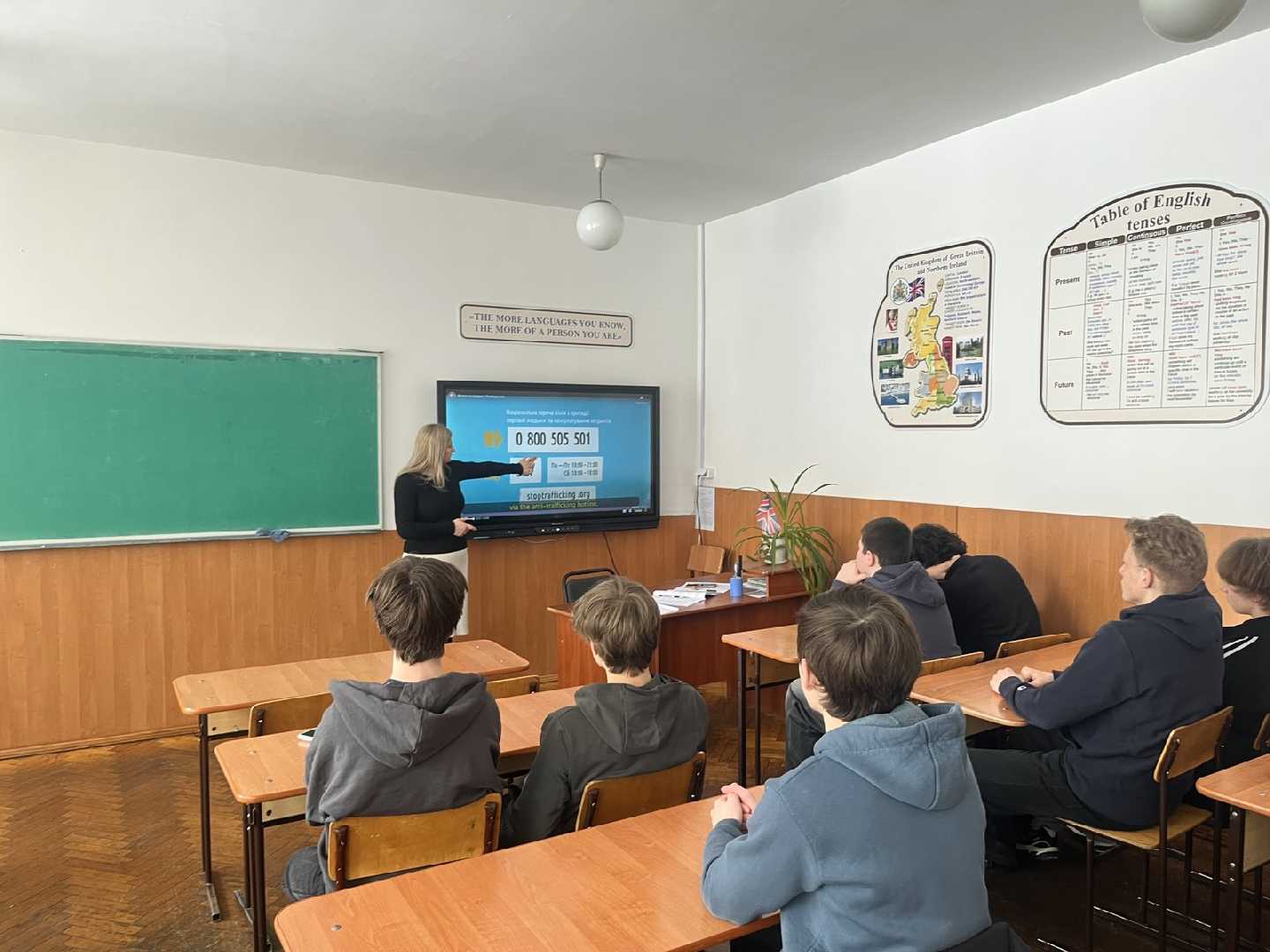 Під час заходу учні переглянули документальний фільм «Життя на продаж», який порушує актуальні питання експлуатації людей, небезпек нелегального працевлаштування та маніпуляцій з боку зловмисників.