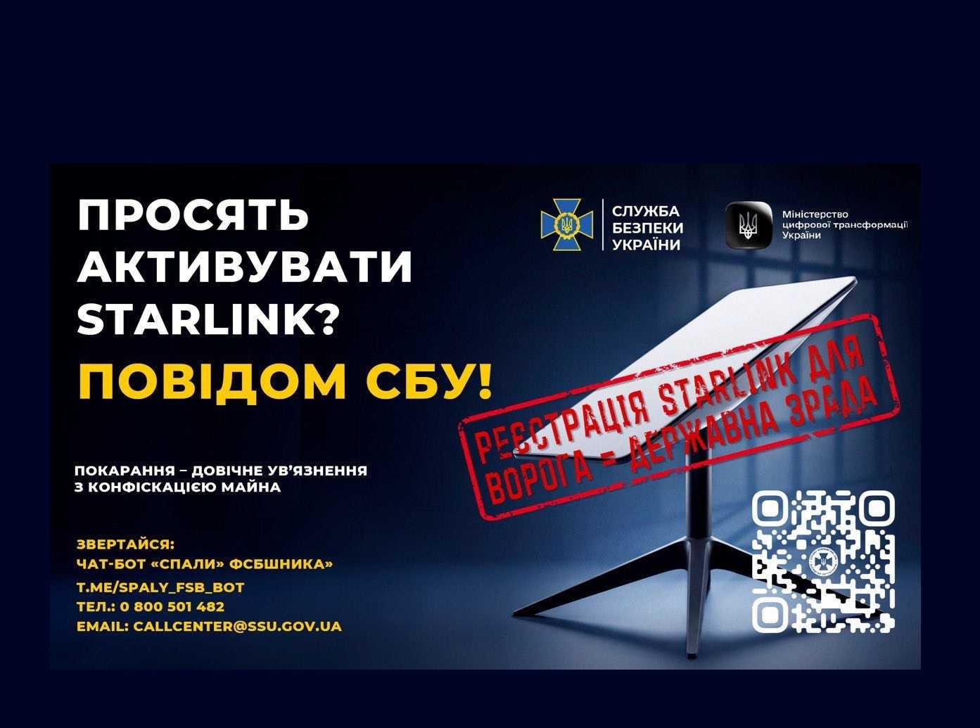 З метою нейтралізації загроз для критичної інфраструктури закликаємо громадян відповідально ставитися до використання обладнання супутникового зв’язку та здійснювати його реєстрацію виключно в офіційному порядку.