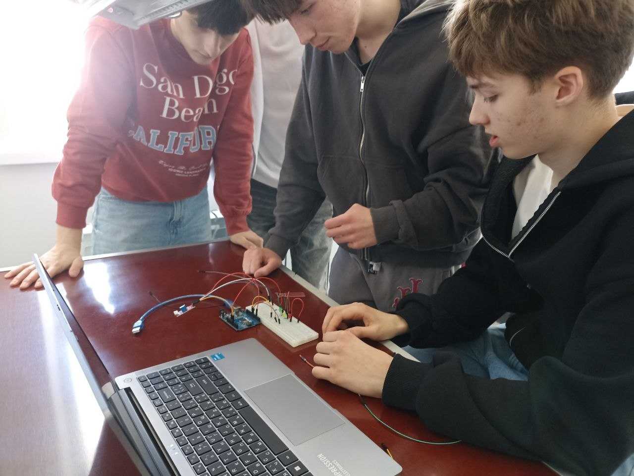 Далі учні разом зі студентами працювали над розробленням і програмуванням системи датчиків якості повітря, рівня шуму та контролю води на базі платформи Arduino. Під час спільної роботи учасники обмінювалися досвідом, тестували підключення сенсорів, створювали алгоритми обробки даних і аналізували результати вимірювань.