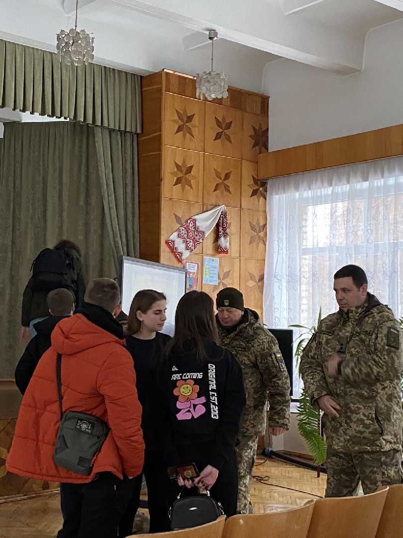 22.12.2022 в Червоноградському ліцею відбулися профорієнтаційні зустрічі учнів 11-А1, 11-Г2, 11-Е та 11-Є класів з курсантами та викладачами Національної академії сухопутних військ і́мені гетьмана Петра Сагайдачного та Харківського національного університету Повітряних Сил імені Івана Кожедуба.