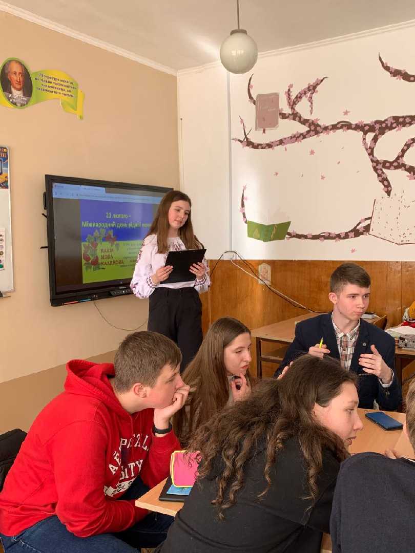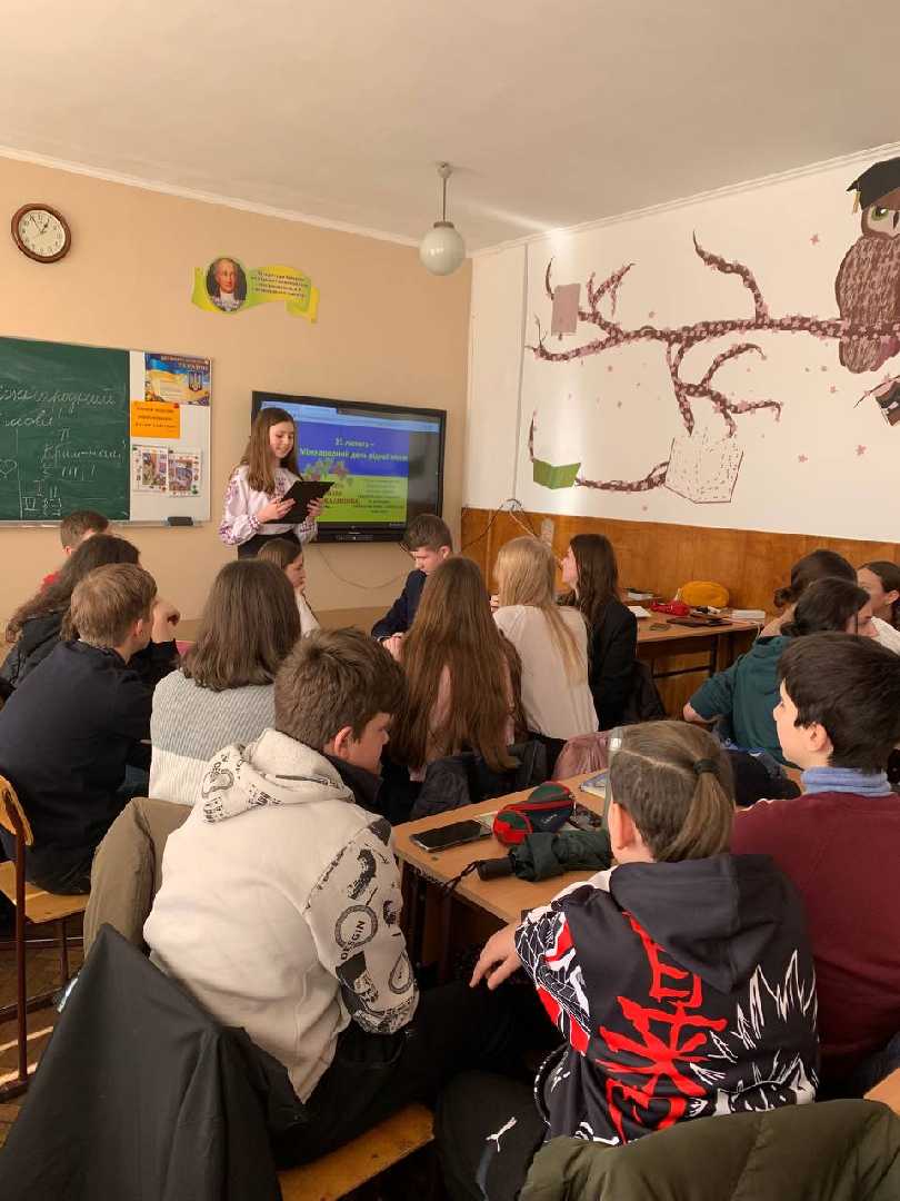 21 лютого 2023 року в 10-В1 класі проведено урок до Дня рідної мови "Передаймо нащадкам наш скарб-рідну мову".