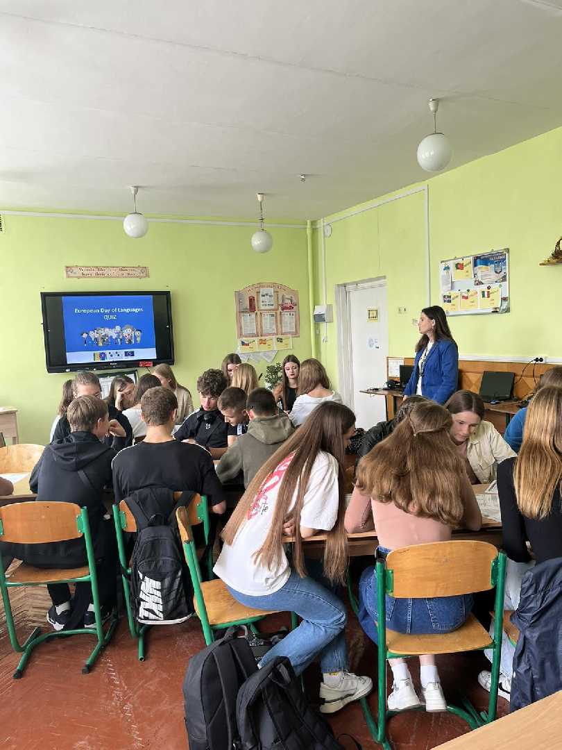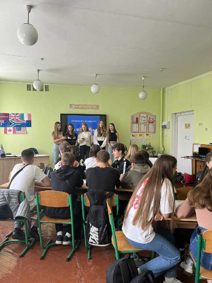 Сьогодні відбувається наближення України до Європейського Союзу. Віримо, що і українська мова незабаром стане офіційно визнаною мовою в європейських інститутах. І саме тому в ліцеї цей День Європейських мов був особливим. Завдяки продуманій організації цього заходу вчителем англійської мови Ващук О.І. він відзначився великим святкуванням цієї дивовижної кількості та різноманітності мов, якими спілкуються в Європі і залишив в серцях учасників події тільки позитивні враження. Позакласний захід був цікавий, пізнавальний та креативний. Учні 11-х класів не тільки перевіряли та застосовували набуті знання й навички в різних видах діяльності, але й постійно дізнавались цікаві вражаючі факти та багато нового про мови, їхнє походження, особливості. Під час перерв звучали пісні на різних європейських мовах, діти розгадували вікторини та повсюди дзвінко лунали вітання «привіт» різними мовами.