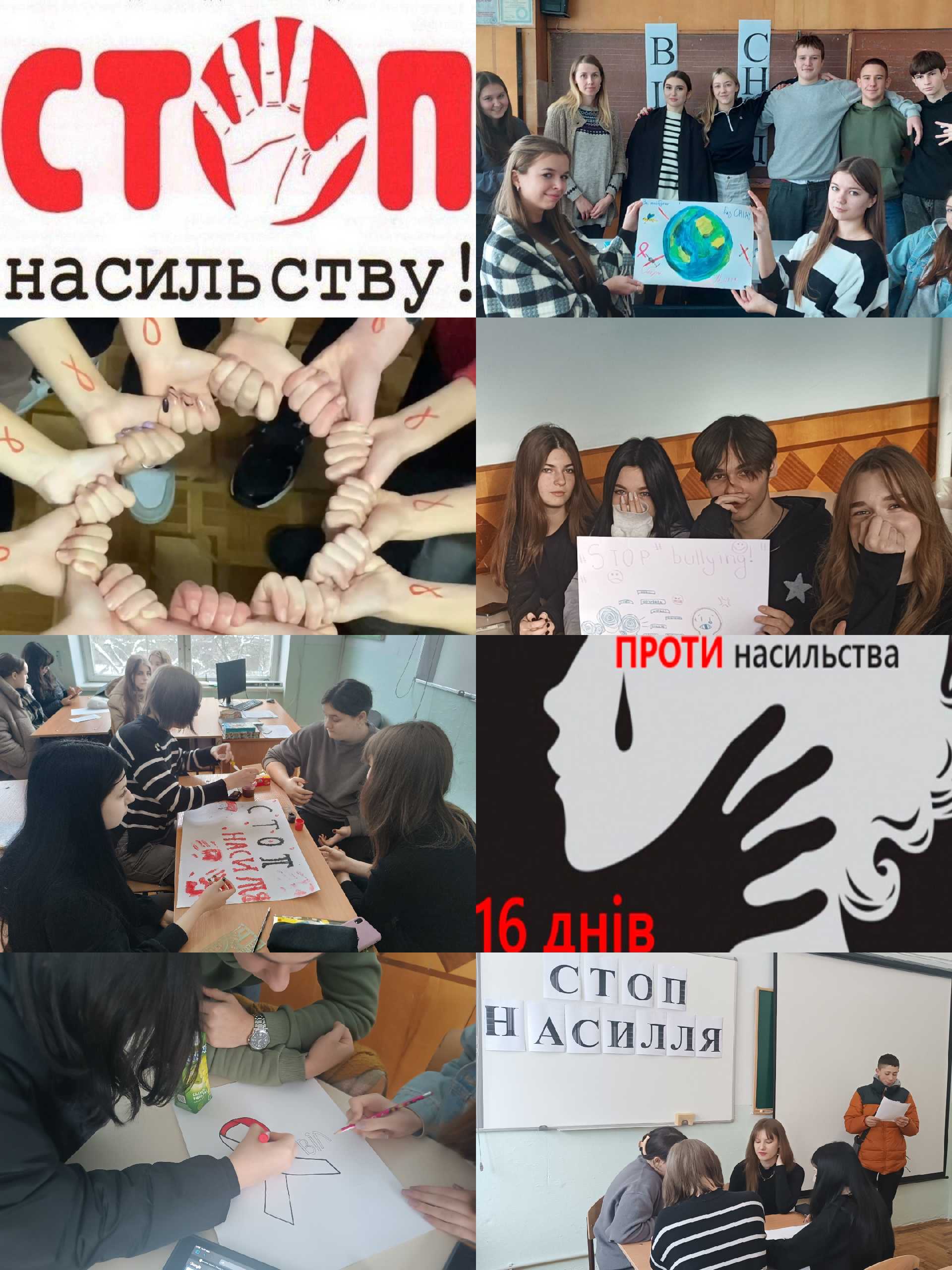 З 25 листопада 2023 року в нашому ліцеї стартувала щорічна акція "16 днів проти насилля". В рамках акції були проведені заходи, щоб підвищити рівень обізнаності здобувачів освіти з питань щодо можливих форм насильства, як протидіяти та куди звертатися, підкреслюючи, що будь- які прояви насильства є порушенням прав людини.