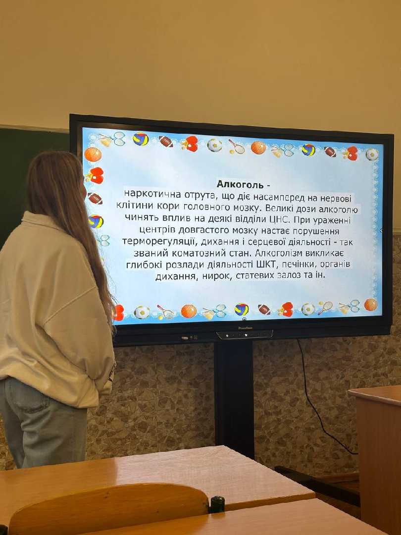14.12.2023 учні 10-В2 класу, класний керівник Шкаврін Катерина Іванівна, провели годину спілкування на тему ''Проблеми алкоголізму, тютюнопаління, наркоманії: причини, профілактика та шляхи подолання''. Учні також роздумували над проблемами ґаджетозалежності та вживання нездорової їжі. На завершення кожна команда створила пам'ятки ''Скажи поганим звичкам ''Ні''.