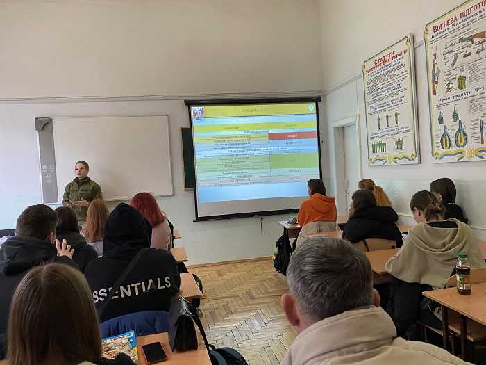 Учні ознайомились із факультетами академії. умовами вступу для здобуття військових спеціальностей та терміном навчання.