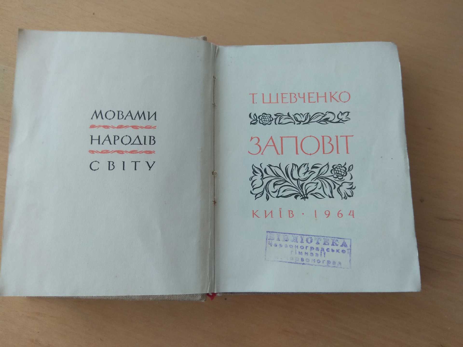 - Особливо цінні для бібліотек є старі видання. Тому вашій увазі книги "Заповіт" (Мовами народів світу), 1964 рік видання та " Лірика" (Поезії, покладені на музику), 1962 рік видання.