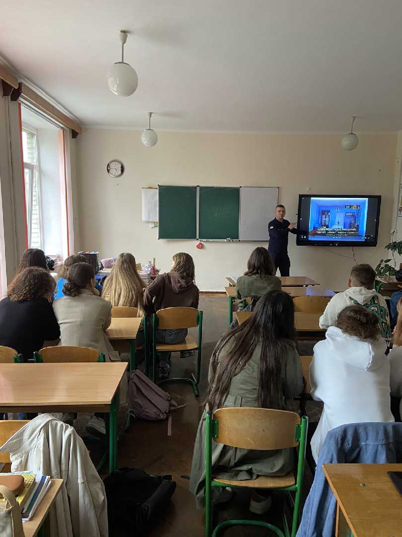 15 квітня 2024 року в Червоноградському ліцеї відбулася зустріч 10-В1 та 10-В2 класів з рятувальниками ДСНС Червоноградського району та м.Червонограда,а саме з провідним інспектором ВПР Червоноградського РУ ГУ ДСНС України у Львівській області Ярославом Бартманом. Зокрема, п.Ярослав нагадав учням правила пожежної безпеки в побуті,чіткий алгоритм дій при виявленні вибухонебезпечних предметів, правила відпочинку біля водойм та на самих водоймах. Також рятувальник наголосив на тому, що забороняється випалювання сухої трави та сміття на присадибних ділянках,адже це дуже шкідливо для довкілля. Щиро дякуємо п.Ярославу за цікаву та змістовну зустріч.