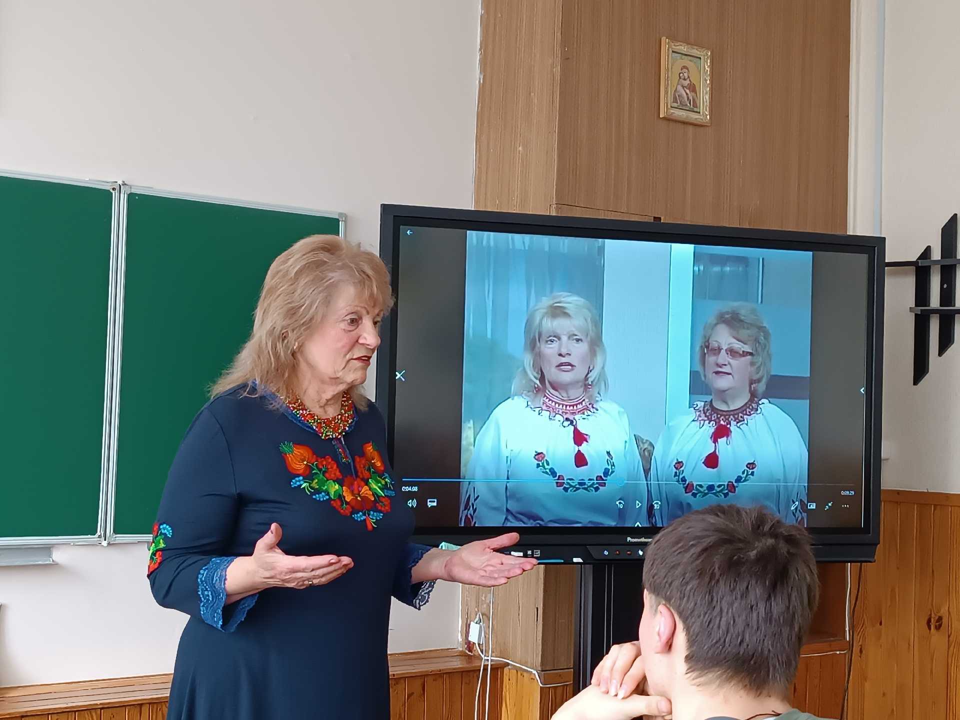 Багато читали віршів, і діти, і автор, переглянули уривок програми "Надвечір'я", котра виходила на центральному телебаченні. В одному із випусків п.Ольга, разом із створеним гуртом "Надвечір'я" виконувала власні пісні. У її доробку близько 20 пісень, вона є автором слів і музики.