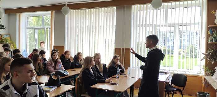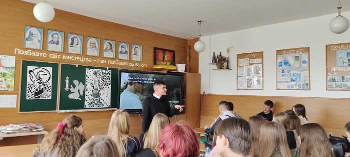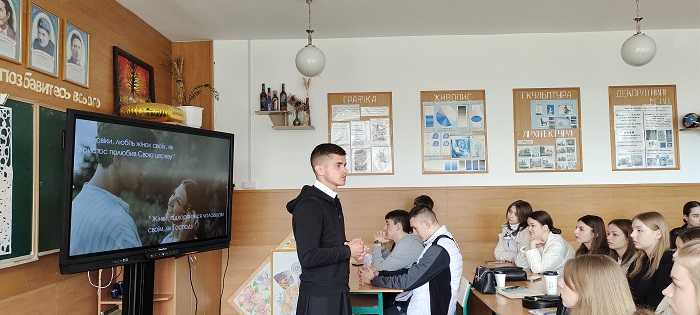 Сьогодні учні 11-Д2 та 11-Е класів разом з класними керівниками Кузьмою Лесею Богданівною та Возьною Роксоланою Михайлівною мали духовну бесіду на тему "Стосунки між молодими людьми", яку провів о.Степан Дуда.