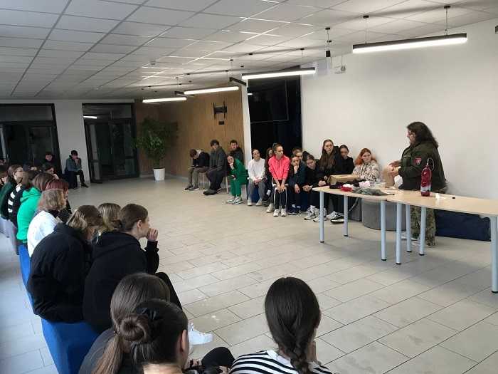 На зустрічі із практичним психологом із «Будинку Воїна» Шкелебей Лесею Йосипівною ліцеїсти дізнались про роботу із людьми, які отримали травми внаслідок воєнних дій та оволоділи сучасними технологіями психологічної допомоги.