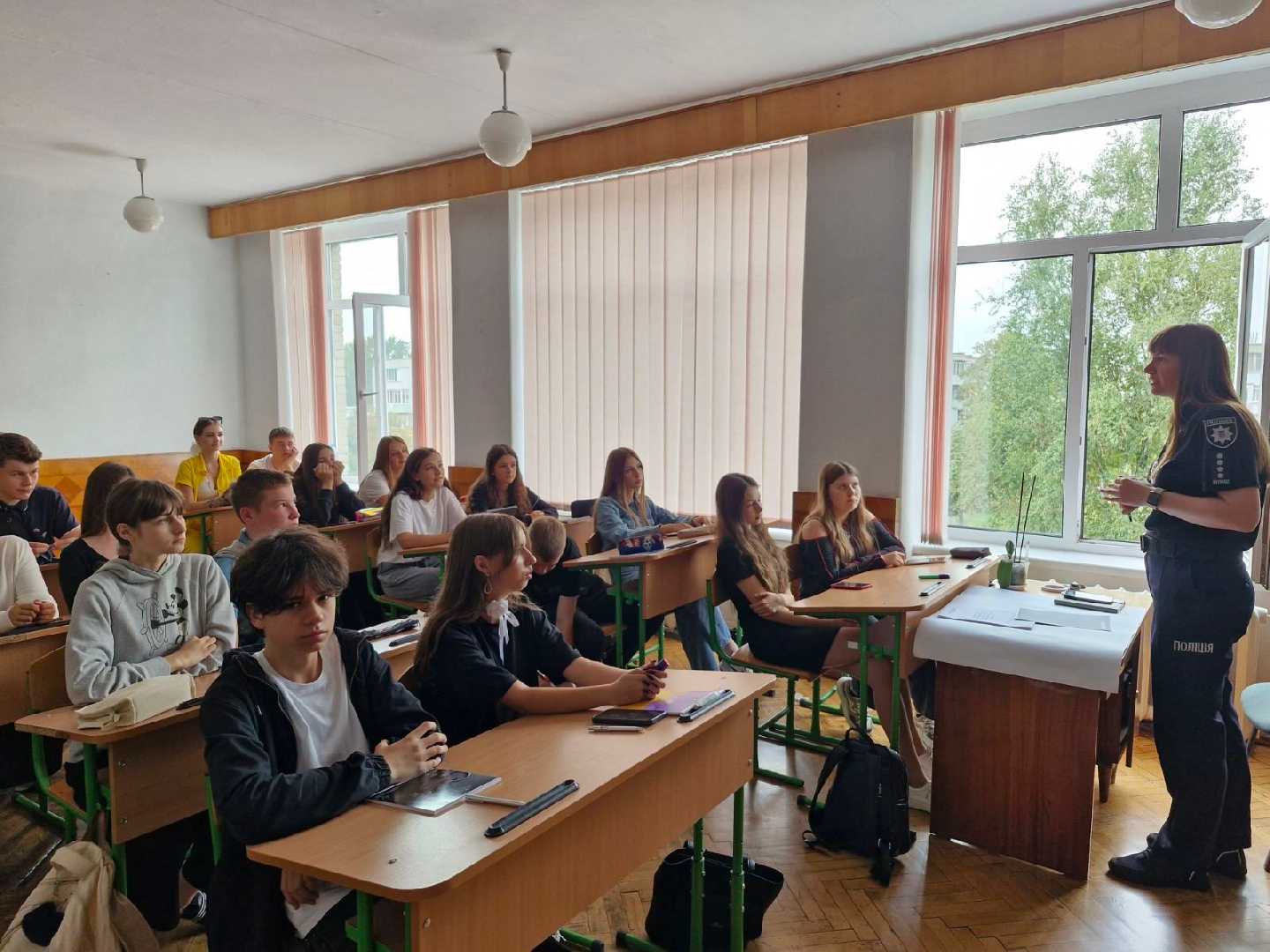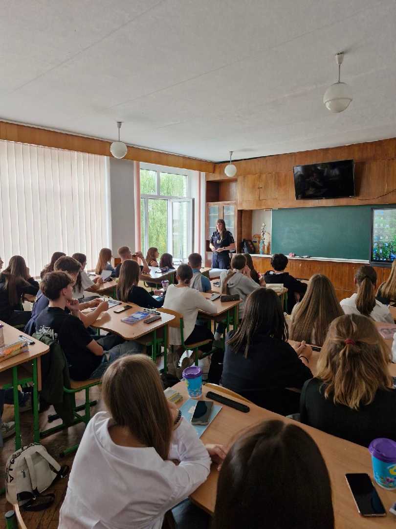 Інспектор служби освітньої безпеки капітан поліції Червоноградського РВП ГУНП у Львівській області Левицька Катерина Василівна 10.09.2024 провела навчання з учнями 10-Д3 класу на тему: Права дитини їх особливості, ситуації порушення та обмеження прав дитини, а також куди звертатись за допомогою.