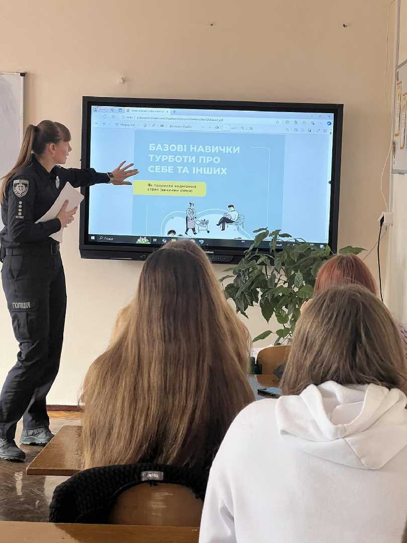 10.10.2024 інспектор СОБ Червоноградського РВП ГУНП у Львівській області капітаном поліції Катерина Левицька провела тренінг з учнями Червоноградського ліцею на тему: «Турбота про себе та оточуючих. Що таке стрес. Види та стадії стресу і шляхи його подолання».