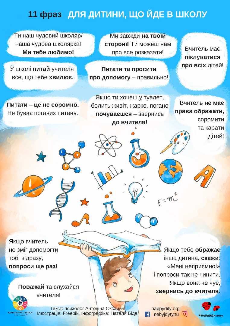 2. Формуйте позитивний образ школи. Ні в якому разі не потрібно говорити першокласникові фрази типу "закінчилося дитинство, почалося доросле життя" або "не будеш слухати вчительку, вона тебе покарає". Так любов до школи в нього точно не виховати.