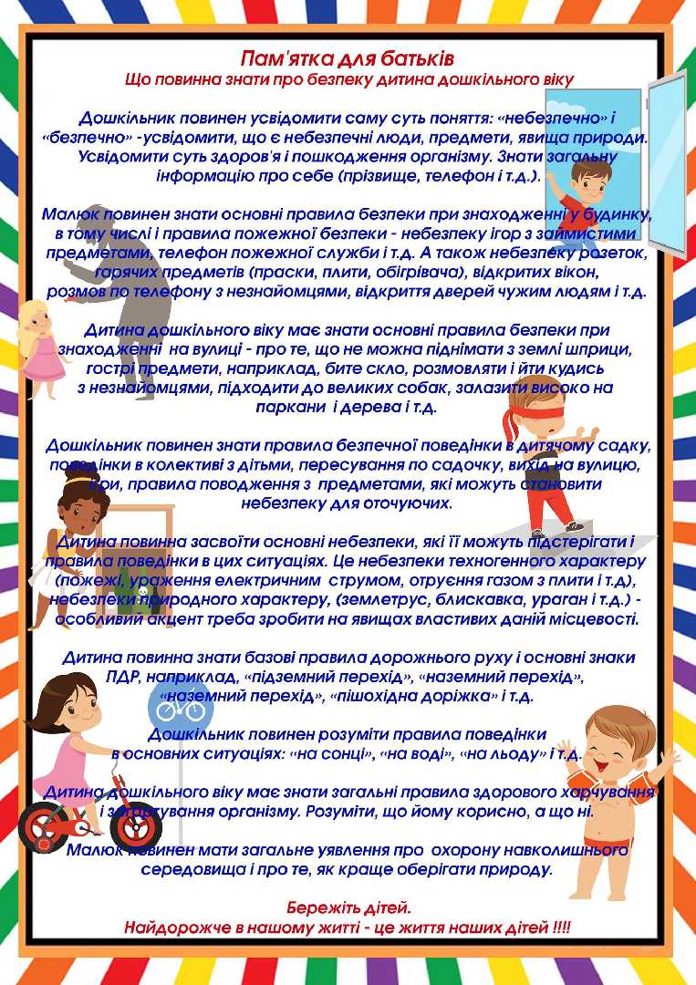Пам'ятка для батьків: Що повинна знати про безпеку дитина дошкільного віку?
