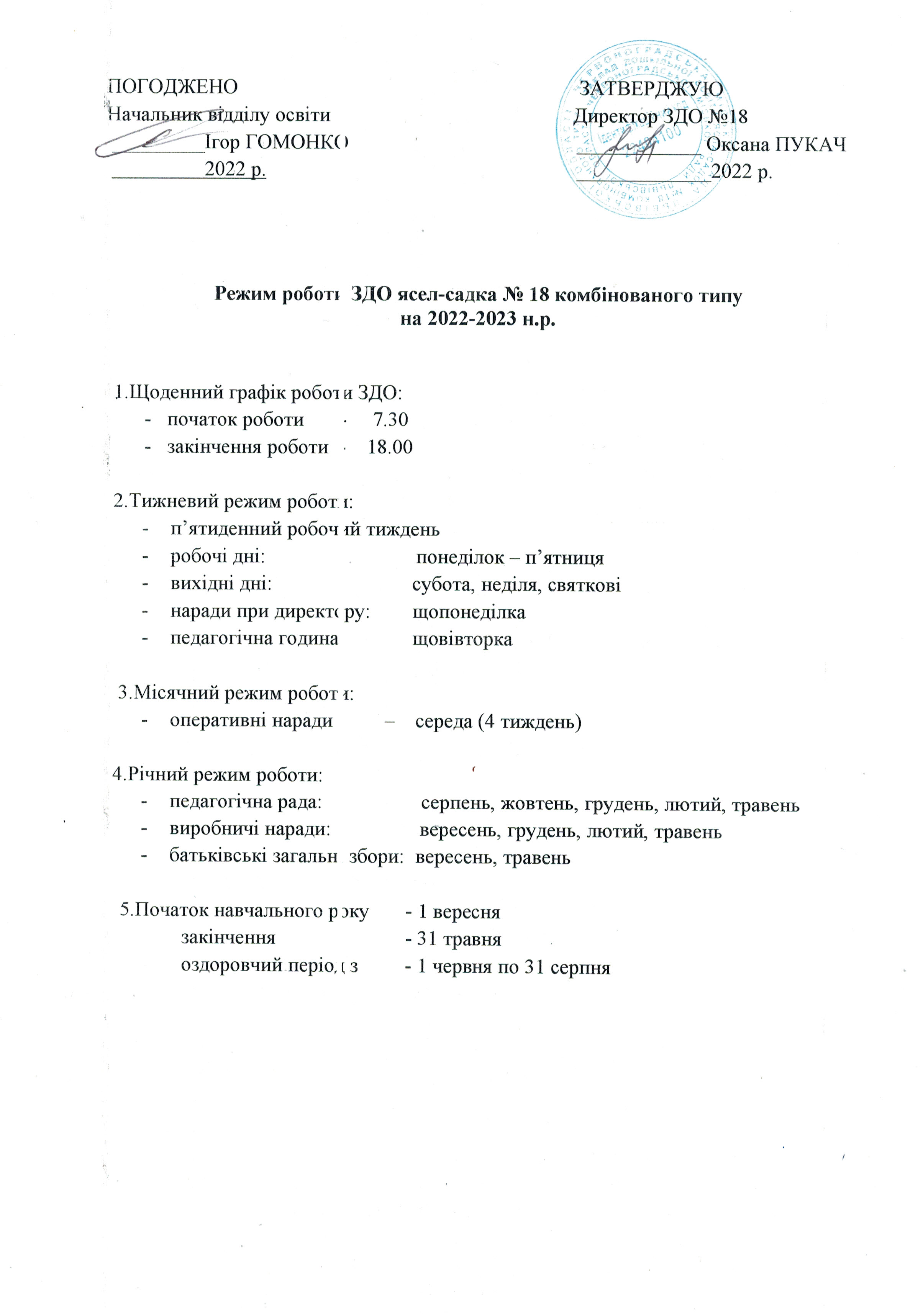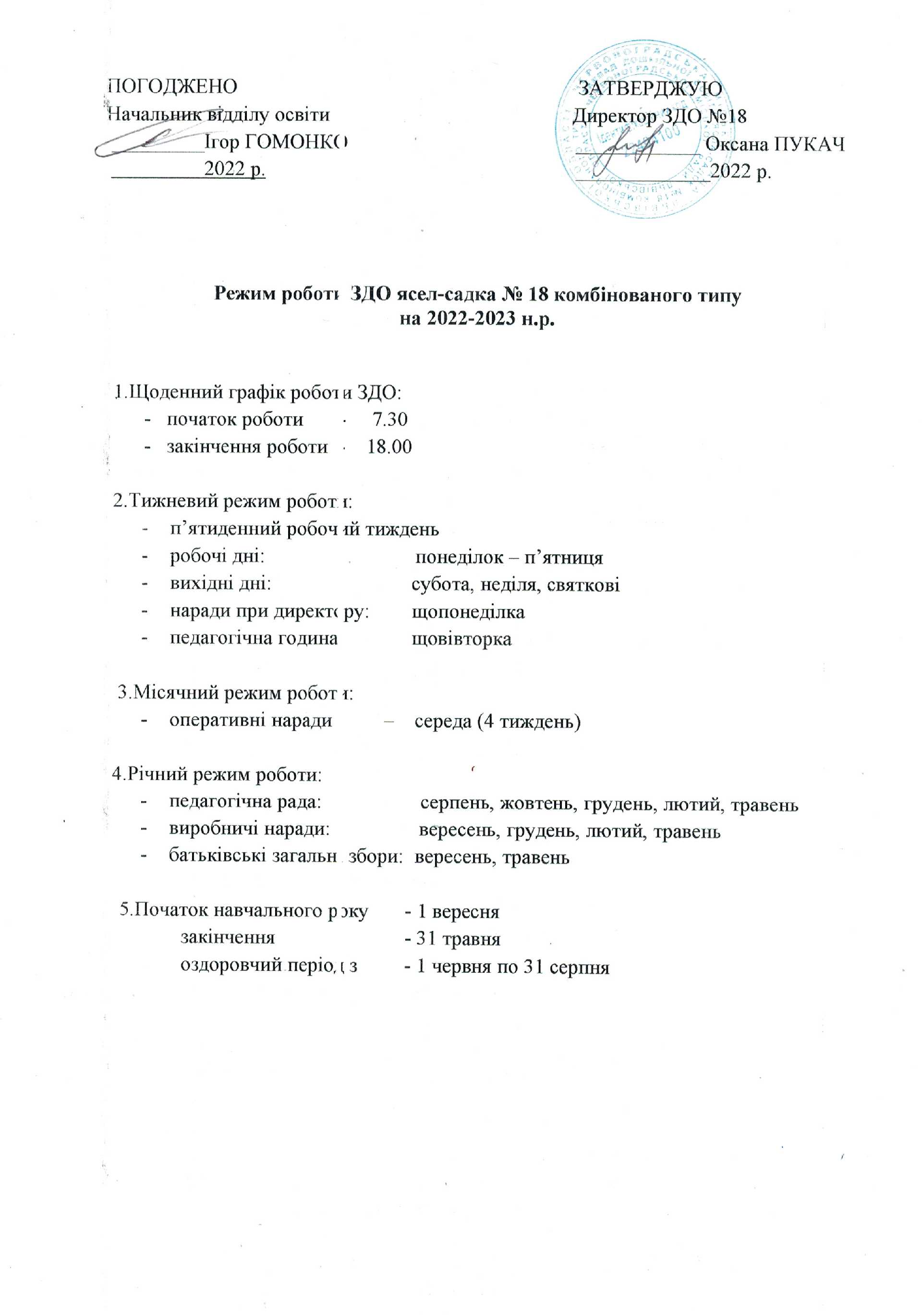 ЗДО я/с № 18 працює з 07.30 до 18.00 год.