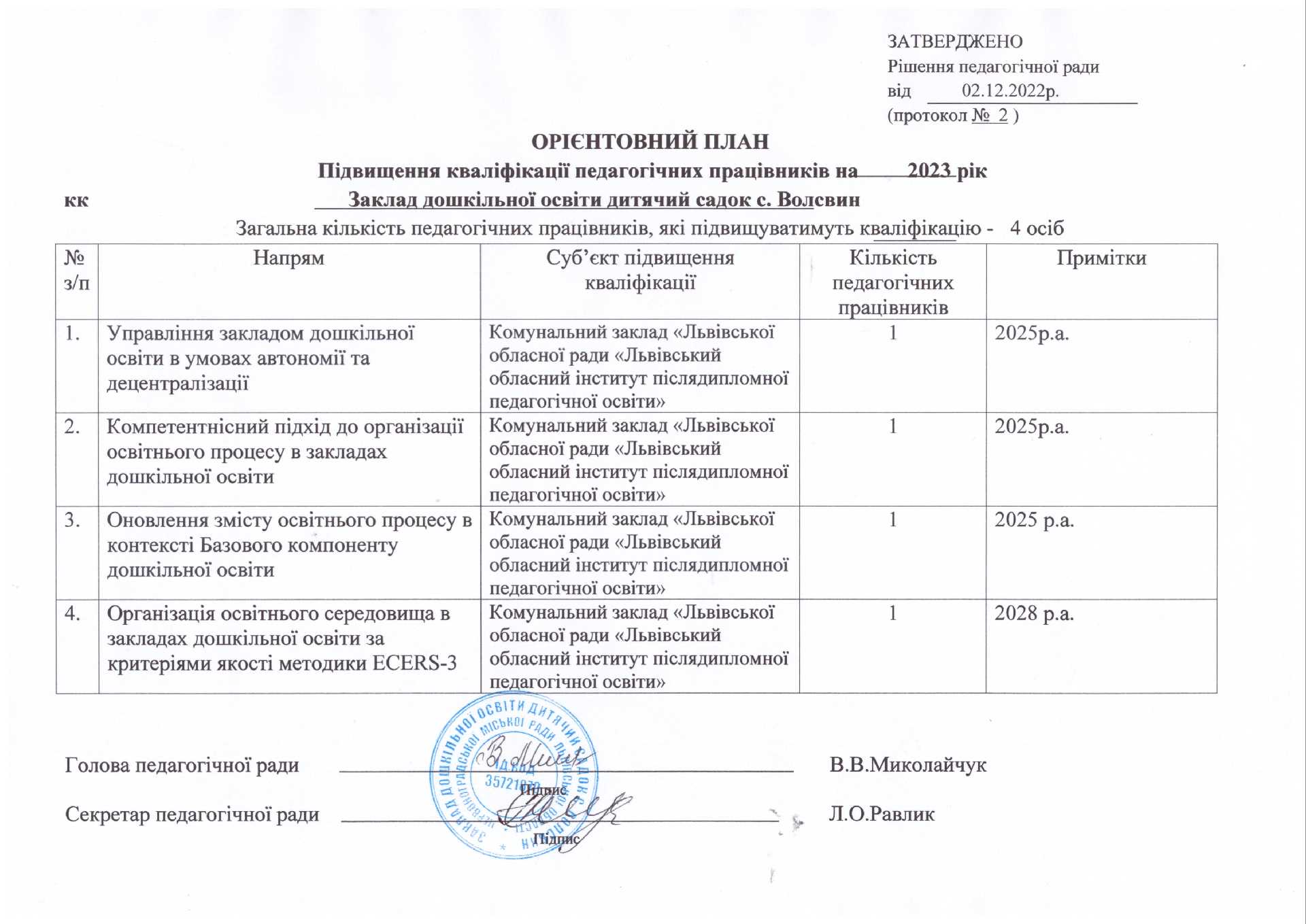 Орієнтовний план підвищення кваліфікації працівників на 2023р.