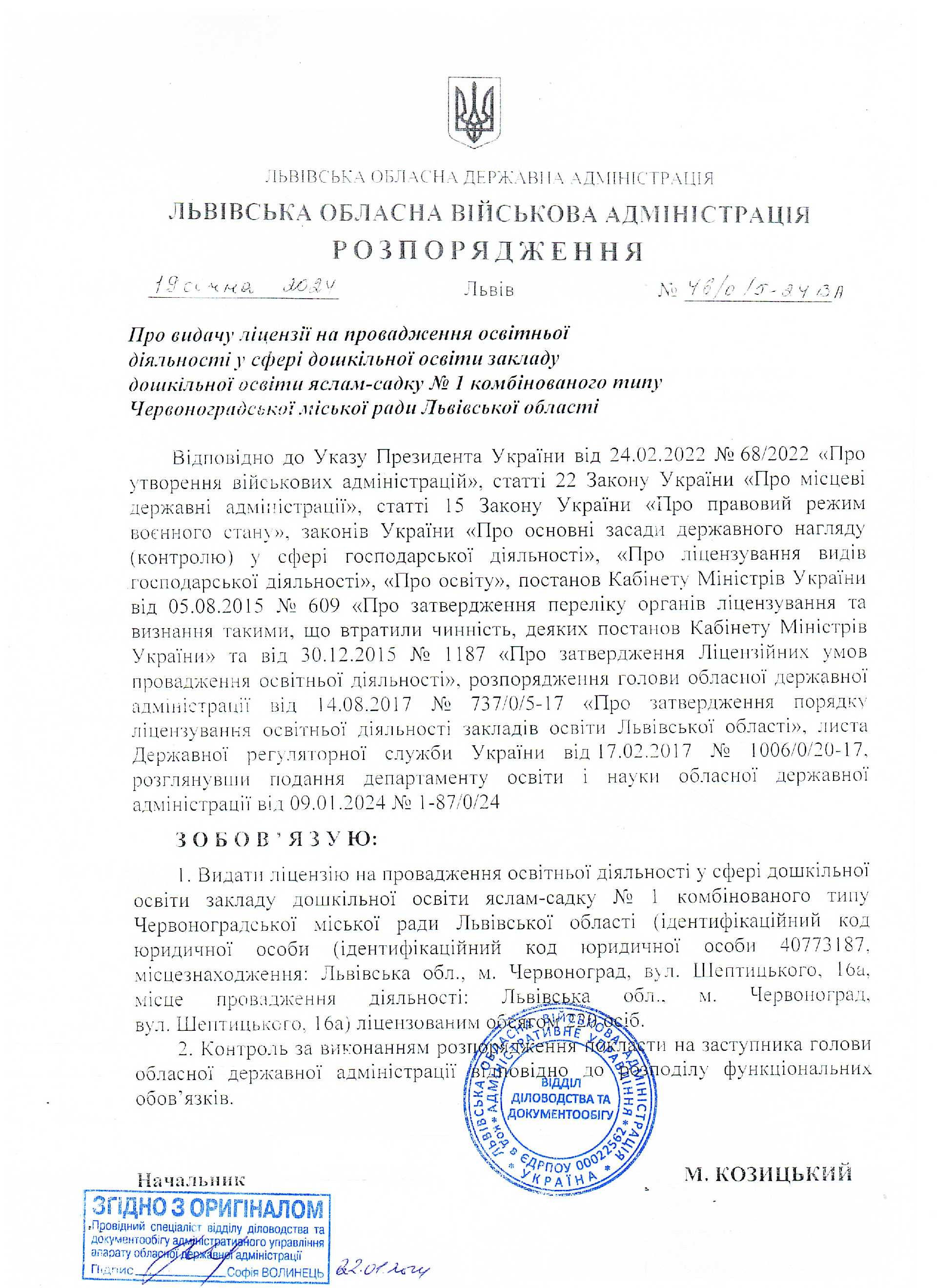 Ліцензія на провадження освітньої діяльності