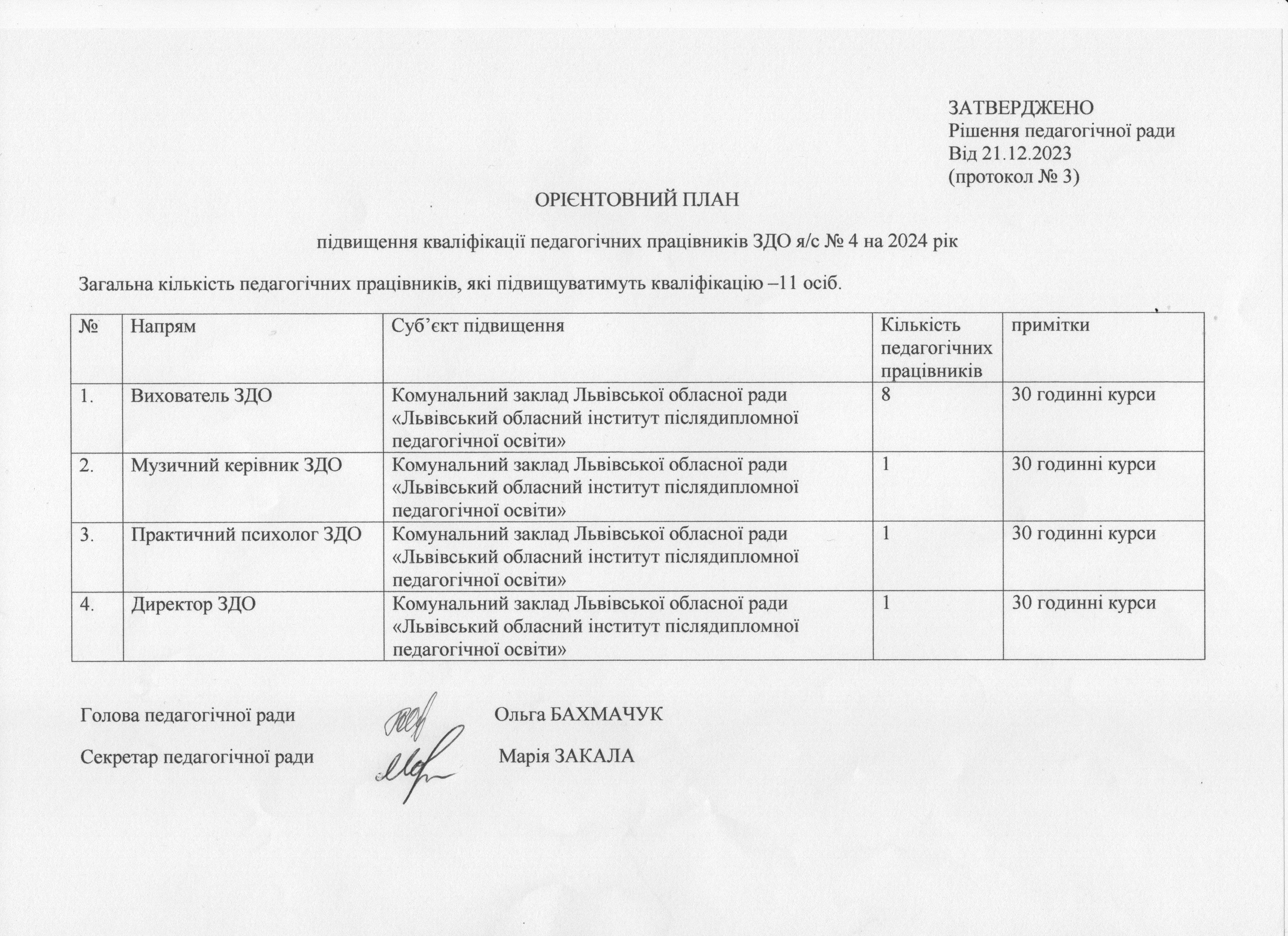 • Орієнтовний план підвищення кваліфікації педагогічних працівників на 2025 рік ЗДО я/с № 4.