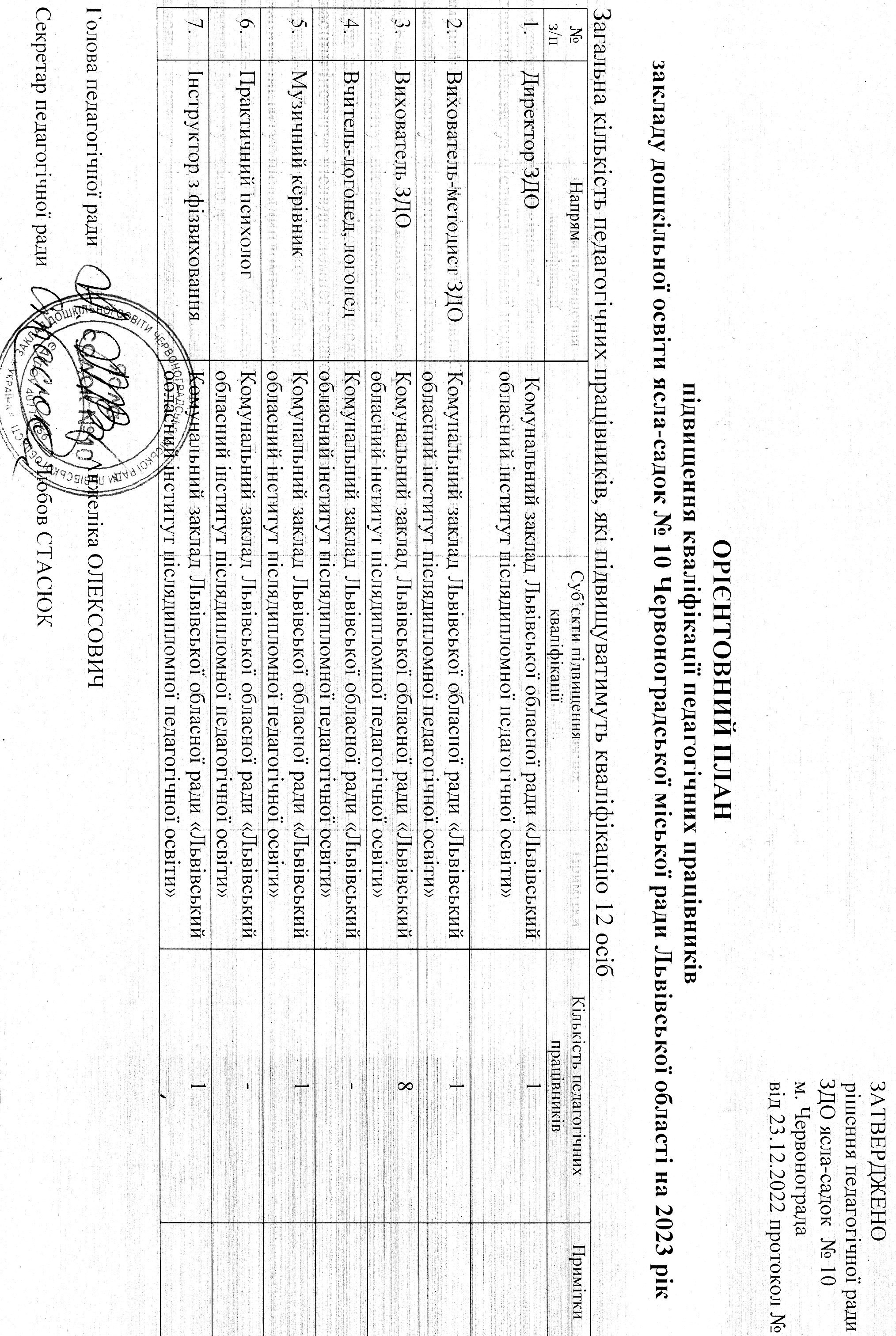 "Орієнтовний план підвищення кваліфікації педагогічних працівників закладу дошкільної освіти №10"