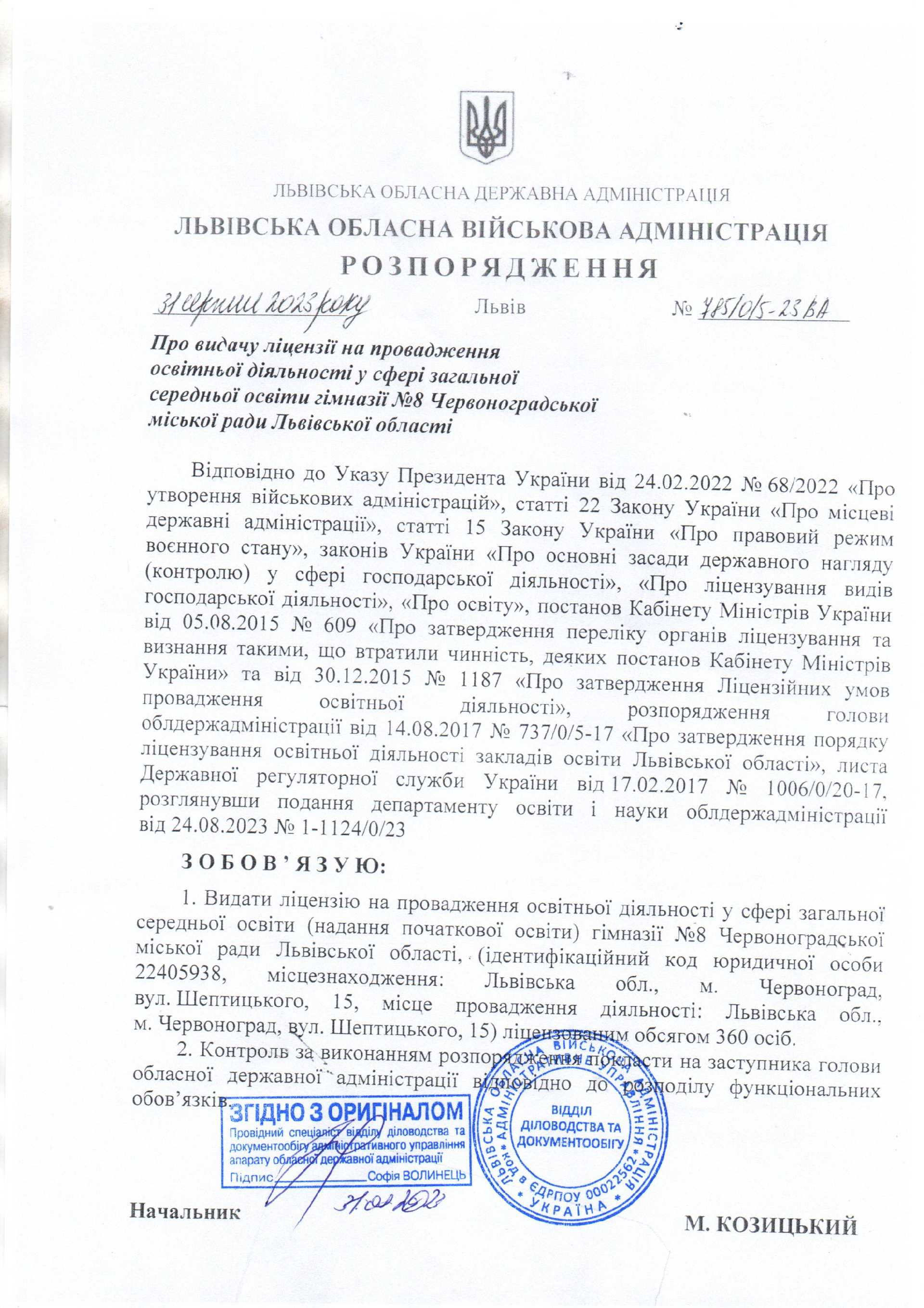 Ліцензований обсяг - 945 осіб