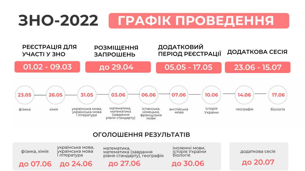Графік проведення ЗНО у 2022 році