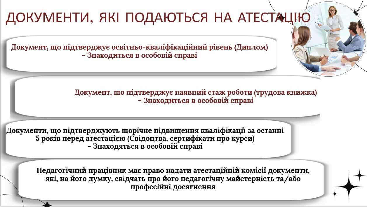 4. Перелік документів, які повинні подати педагогічні працівники для атестації.
