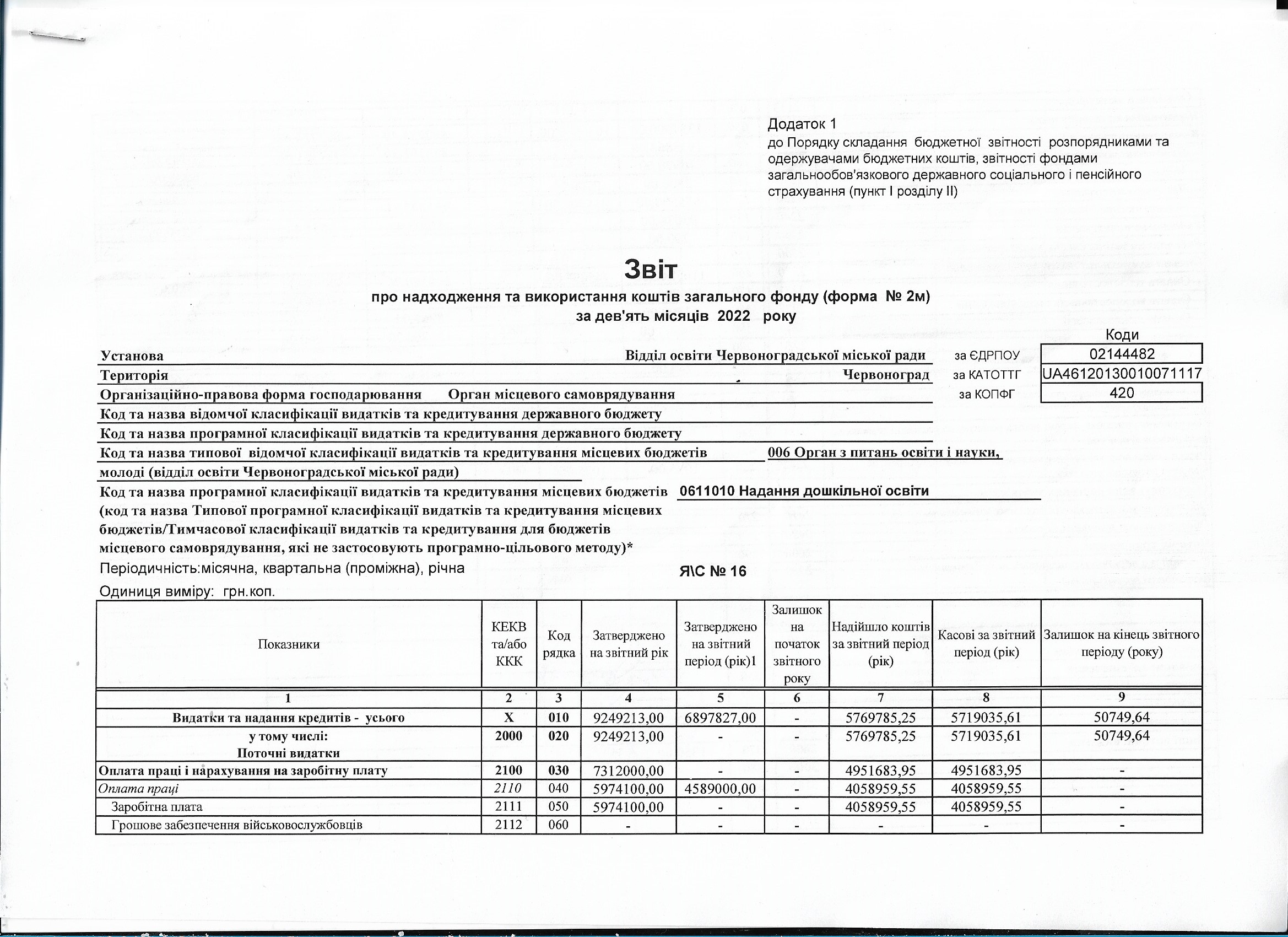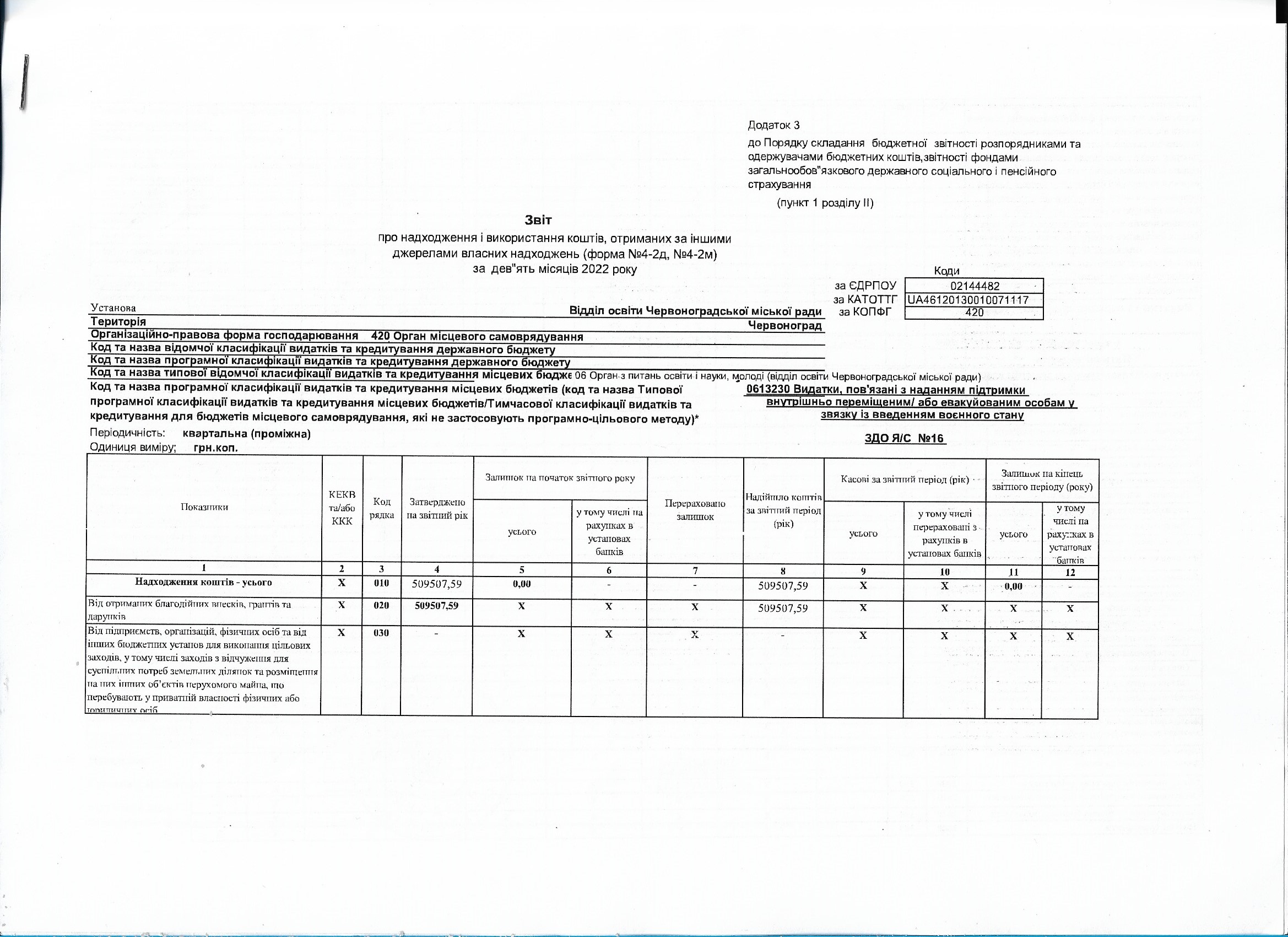 Звітність щодо отриманої благодійної допомоги